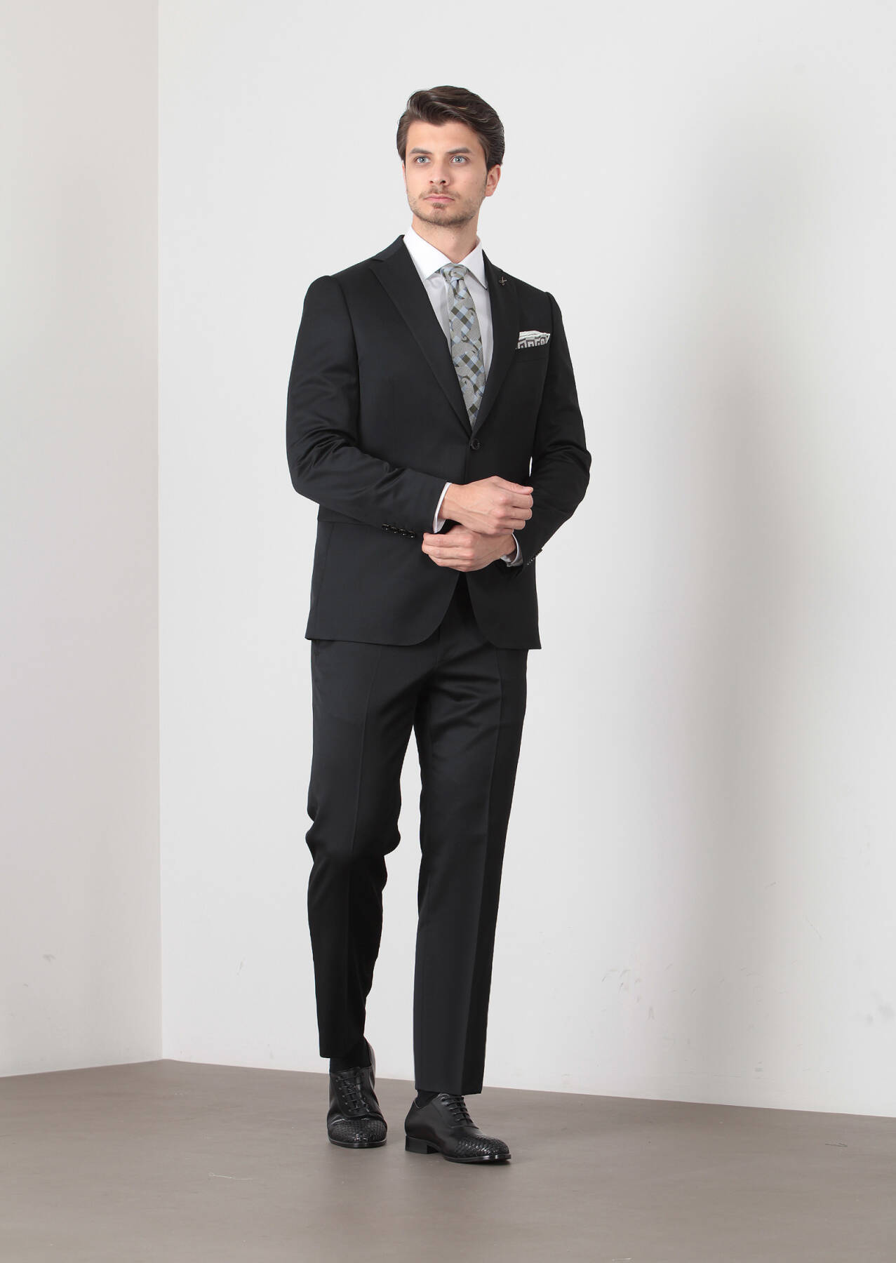 Model: Height: 187 cm, Chest: 98 cm, Waist: 78 cm, Size: 48