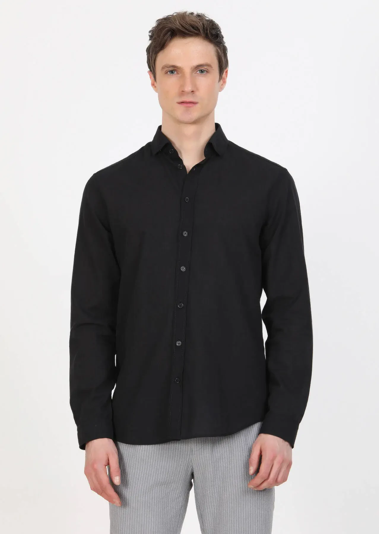 Black Plain Regular Fit Weaving Casual 100% Cotton Shirt