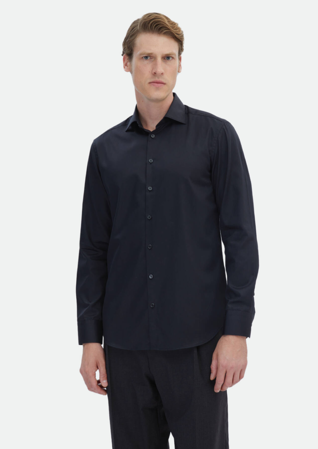 Black Plain Regular Fit Weaving Classical 100% Cotton Shirt