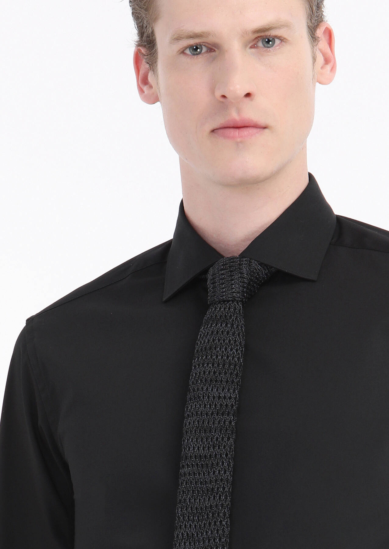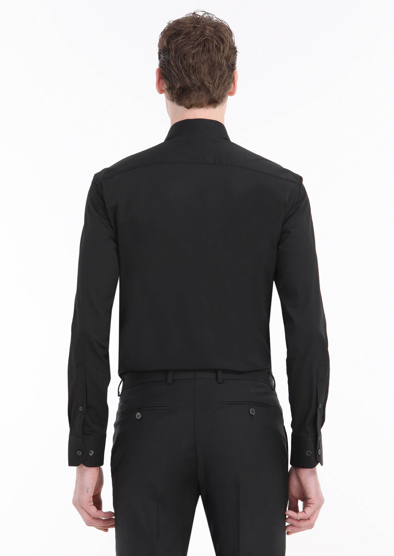 Black Plain Regular Fit Weaving Classical Cotton Blended Shirt