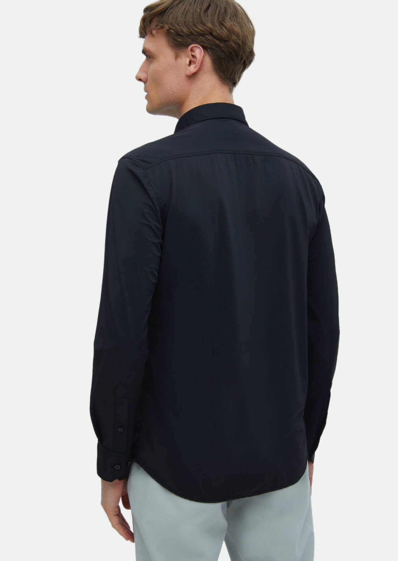 Black Plain Regular Fit Weaving Classical Shirt