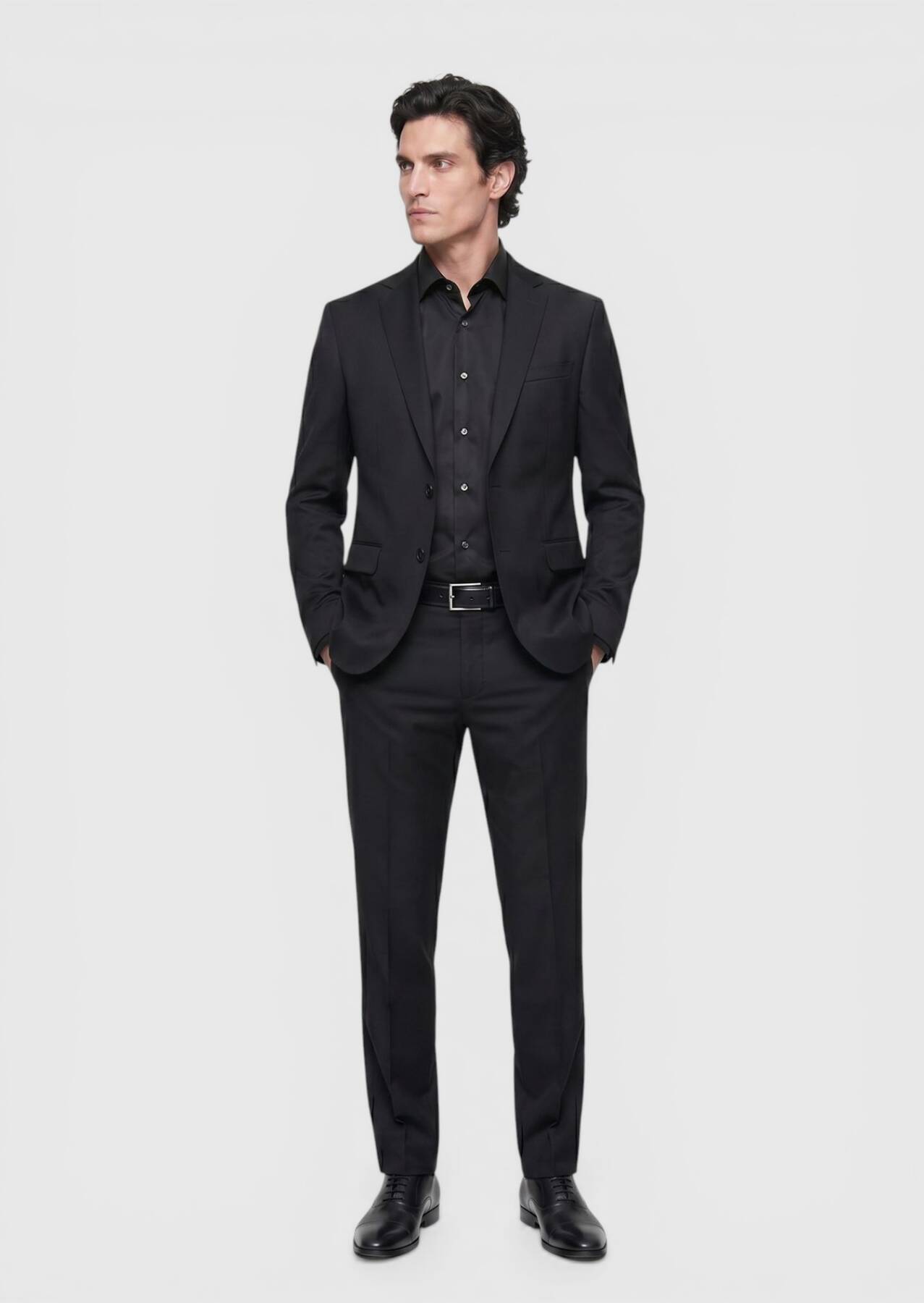 Model: Height: 190 cm, Chest: 102 cm, Waist: 87 cm, Hips: 102 cm, Size: 48