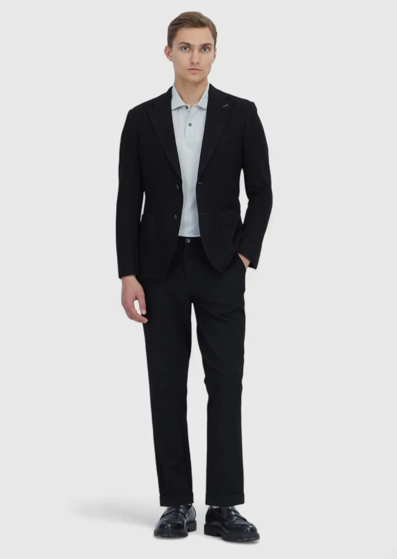 Black Plain Shirt Shoulder Slim Fit Cotton Blended Jacket