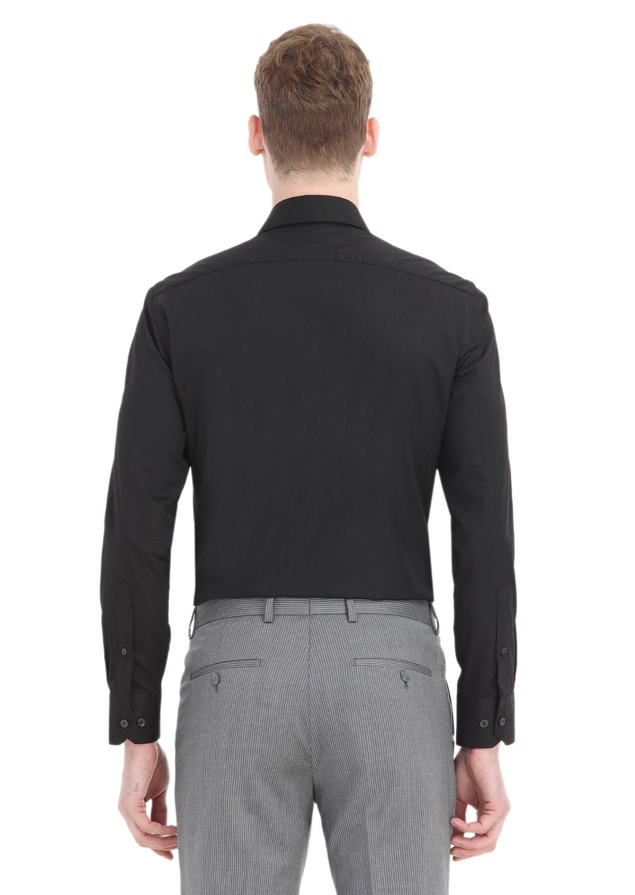 Black Plain Slim Fit Weaving Classical Cotton Blended Shirt