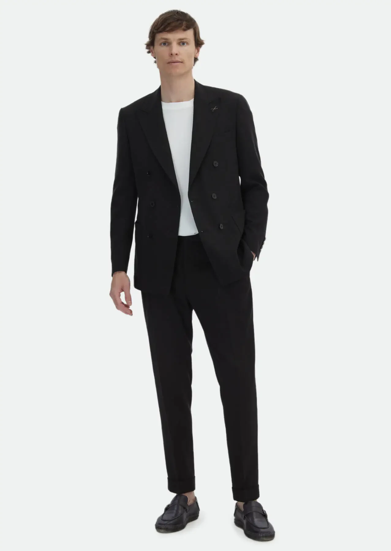 Model: Height: 187 cm, Chest: 98 cm, Waist: 78 cm, Hips: 96 cm, Size: 48
