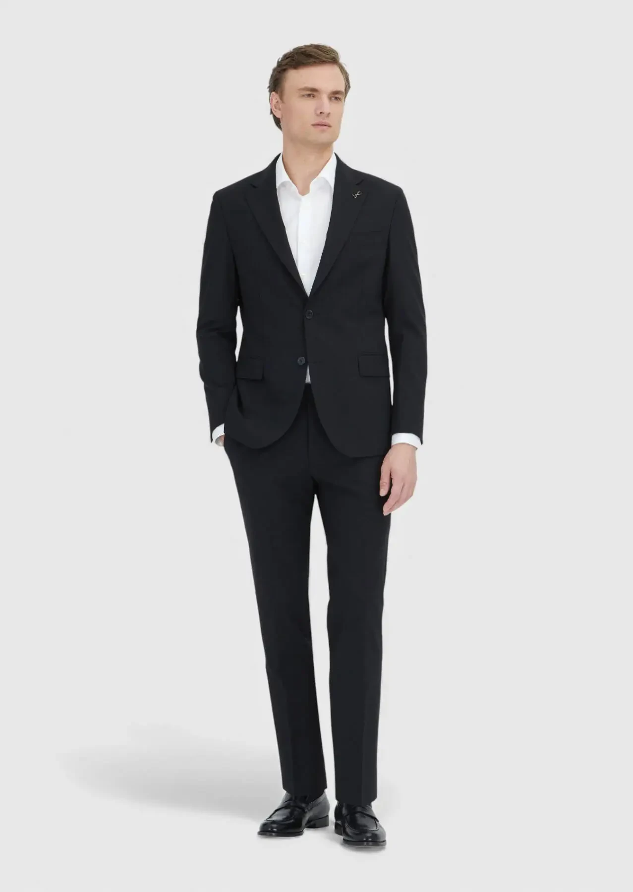 Black Plain Zeroweight Slim Fit Wool Blended Suit