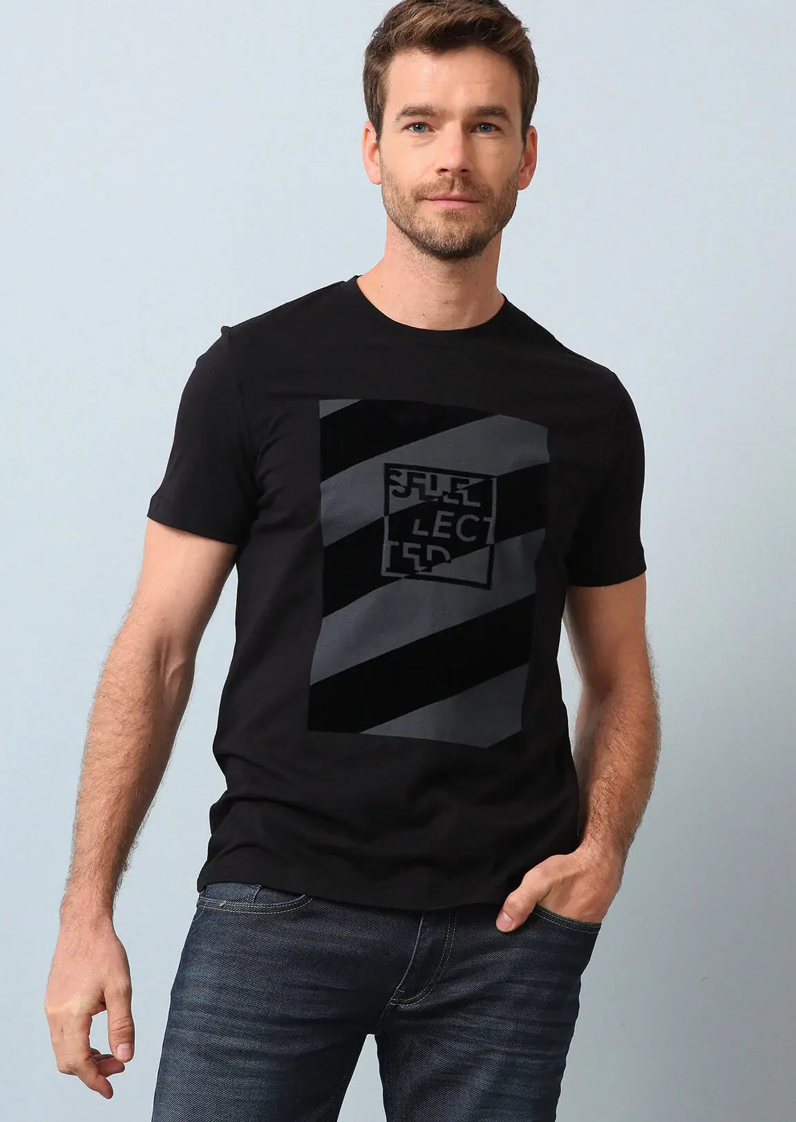 Black Printed 100% Cotton T-Shirt