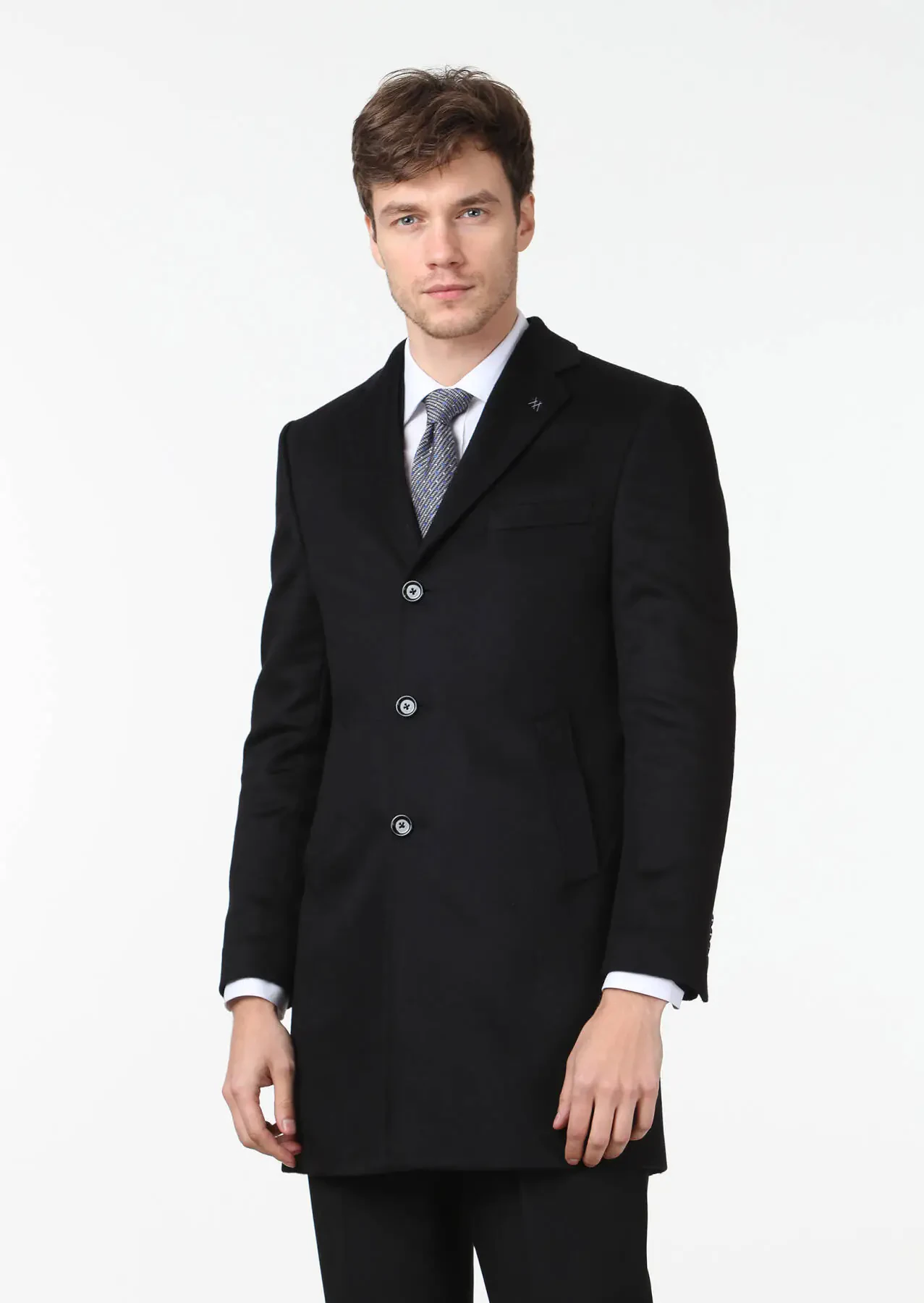 Black Regular Fit Butterfly Collar Classical Weaving Overcoat