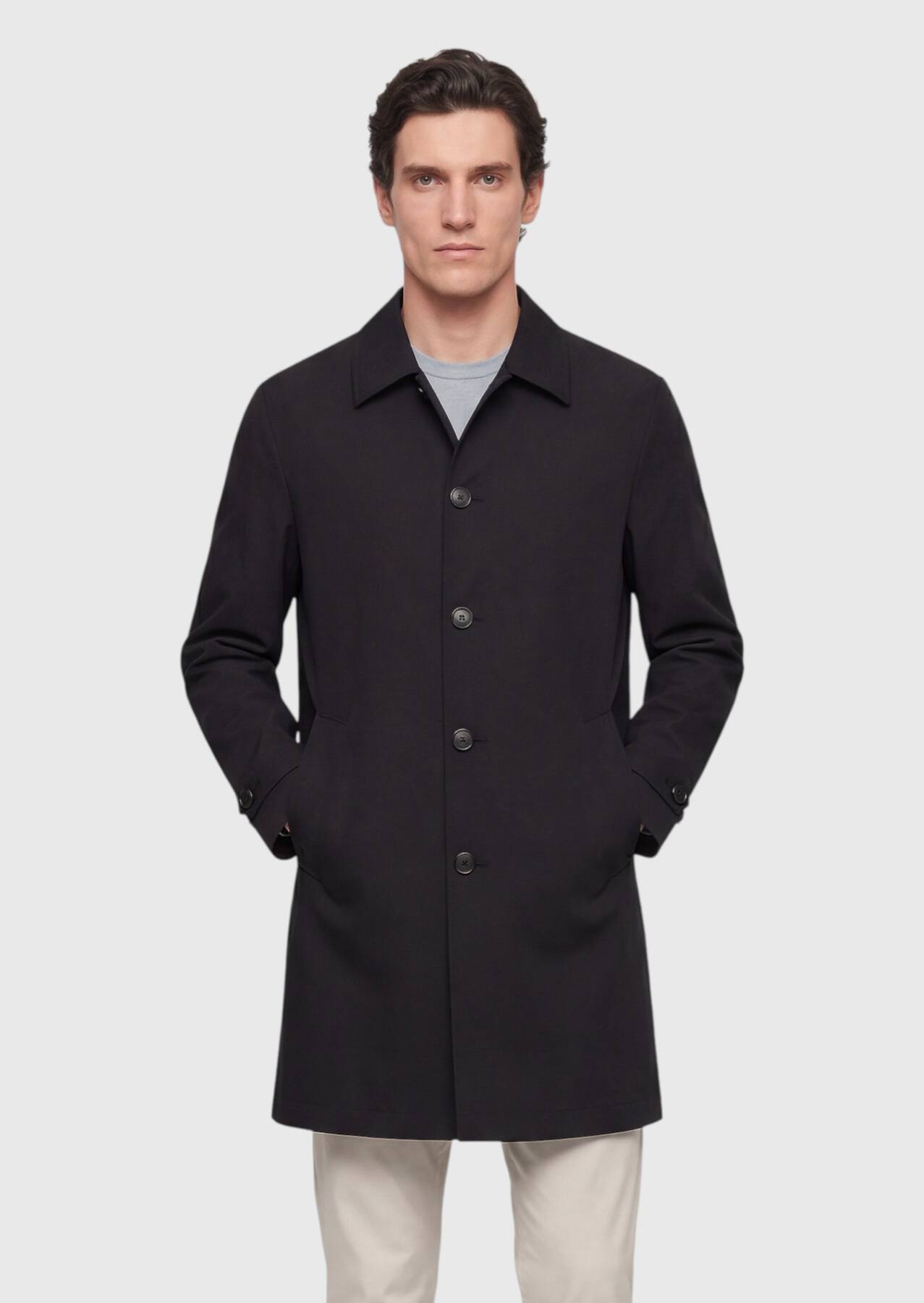 Black Regular Fit Shirt Collar Casual Technical Rain Coat