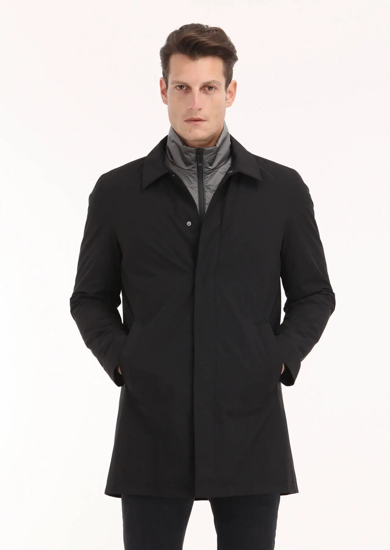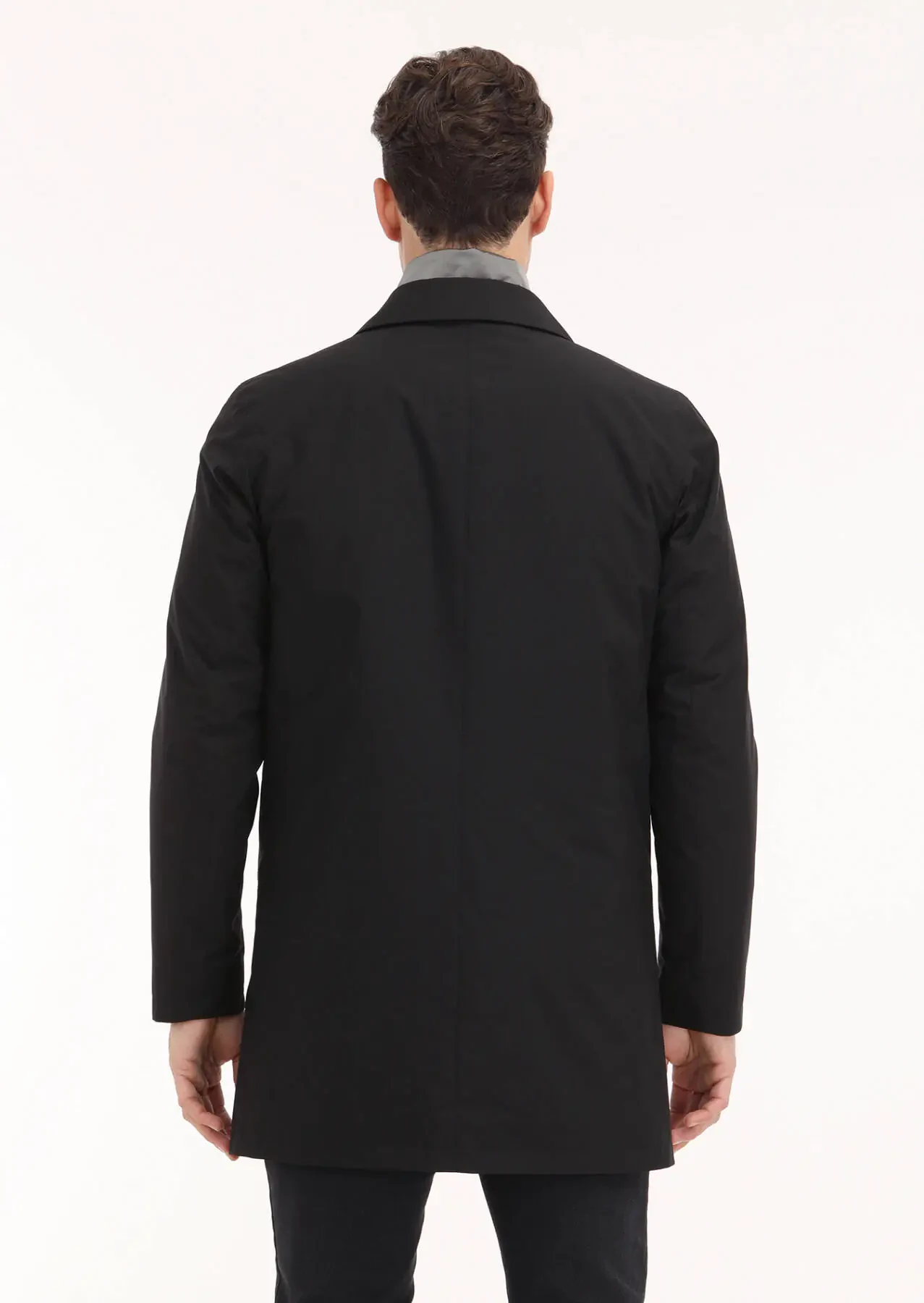 Black Regular Fit Shirt Collar Casual Weaving Rain Coat