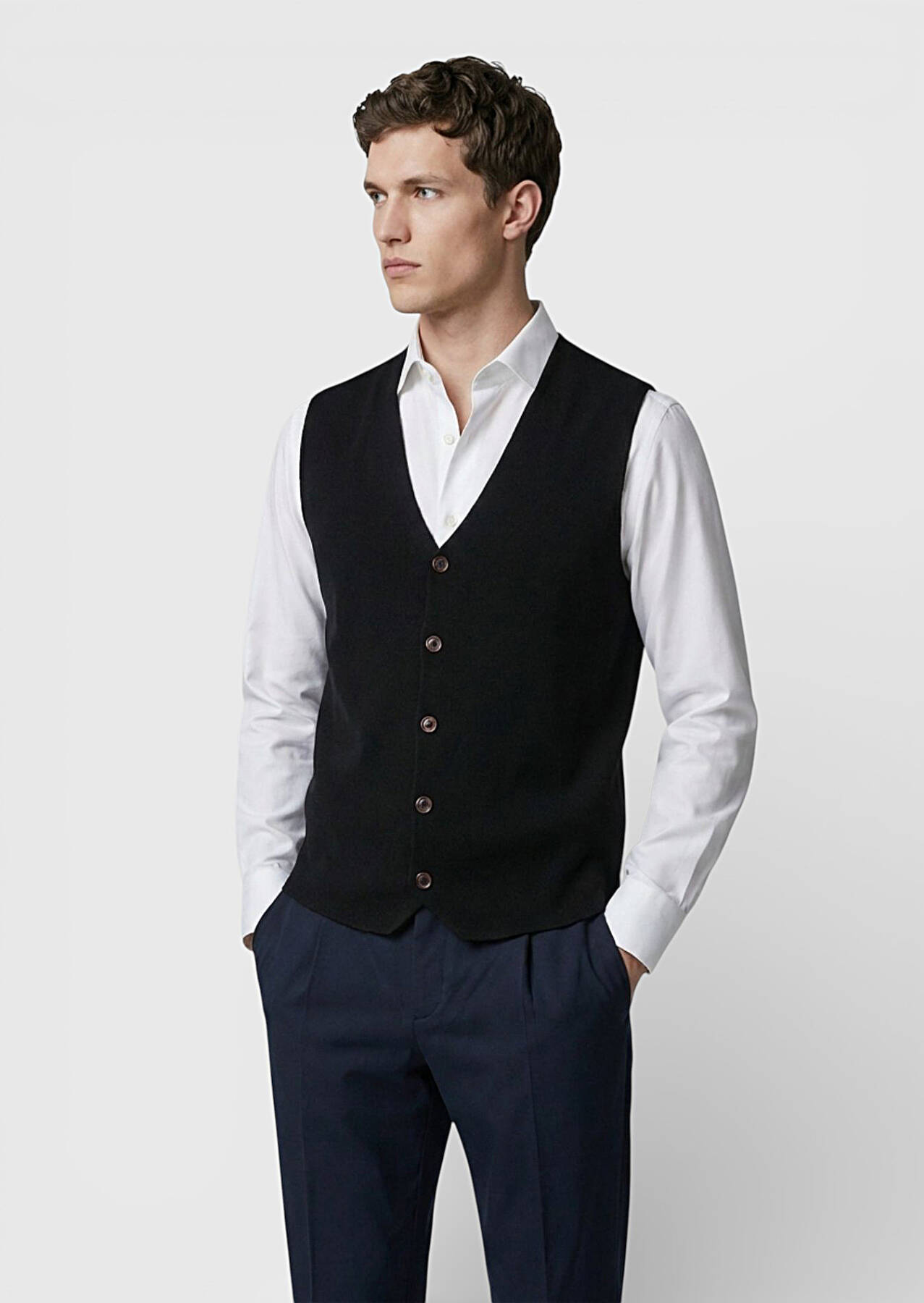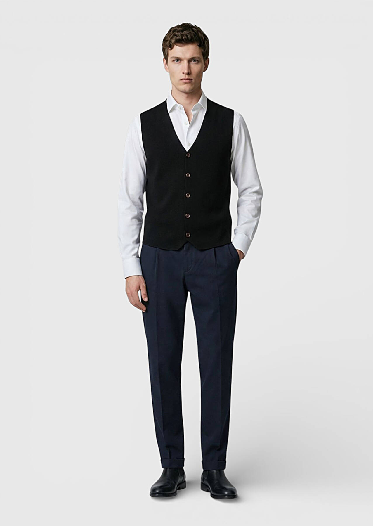 Black Regular Fit V-Neck Casual Knitting Knit Vest
