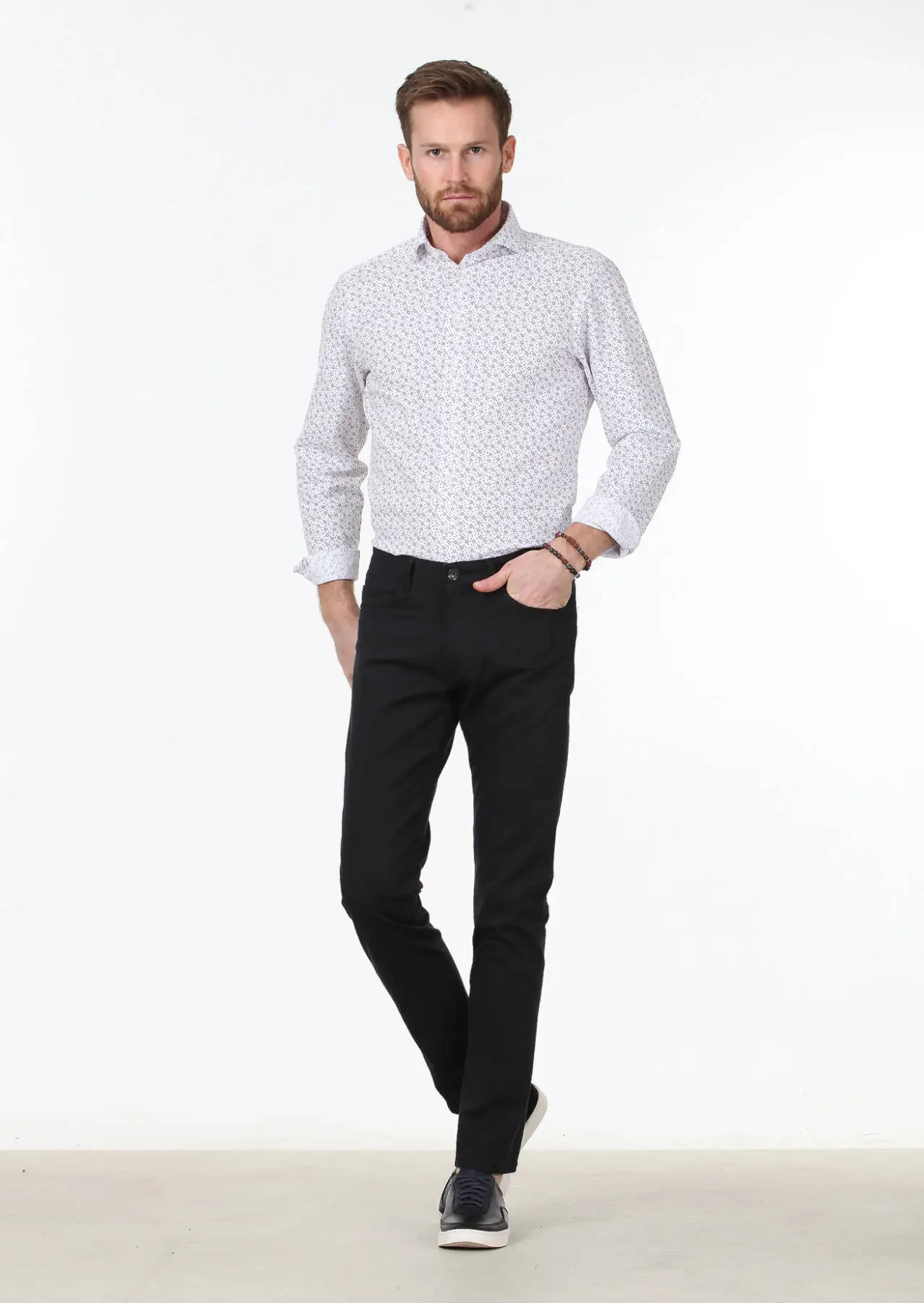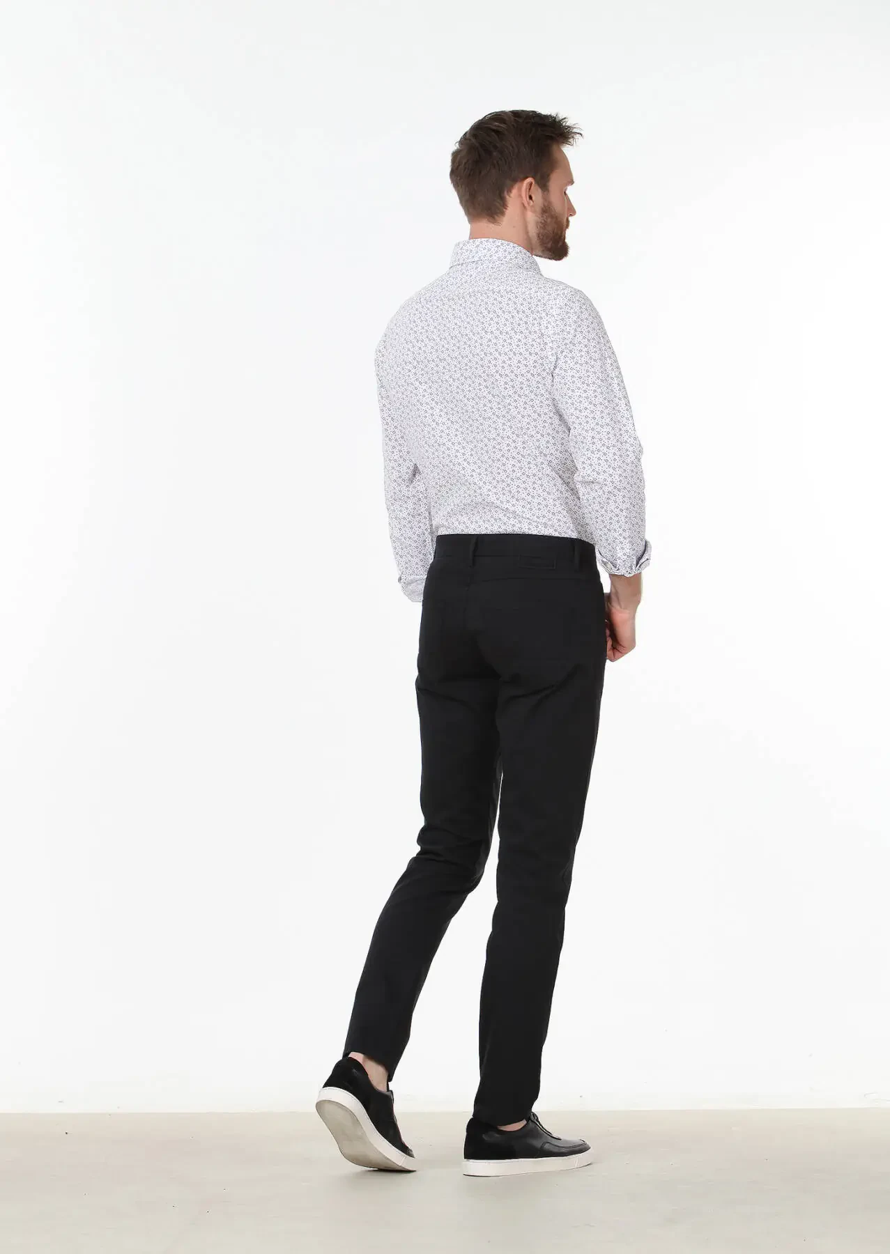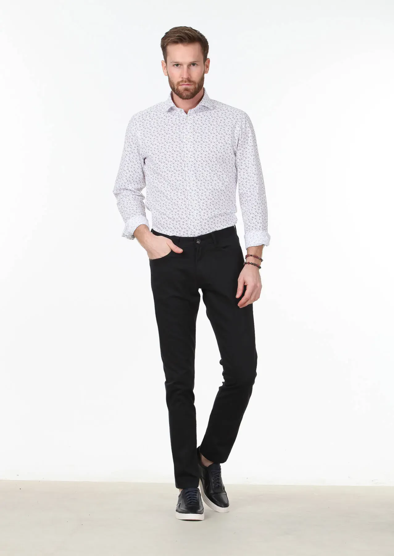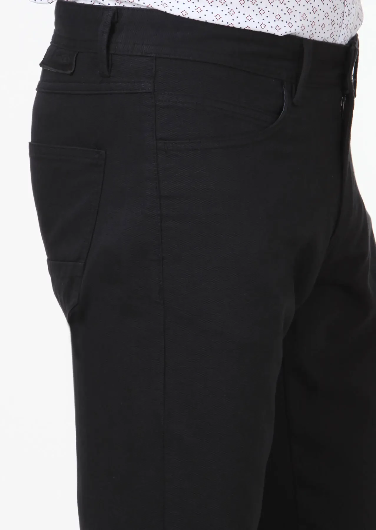 Black Weaving Slim Fit Casual Cotton Blended Trousers