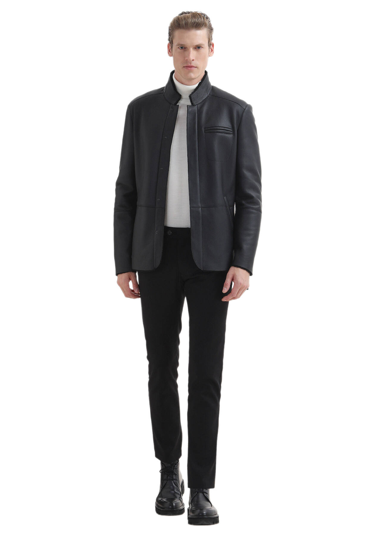 Model: Height: 190 cm, Chest: 94 cm, Waist: 76 cm, Size: 32