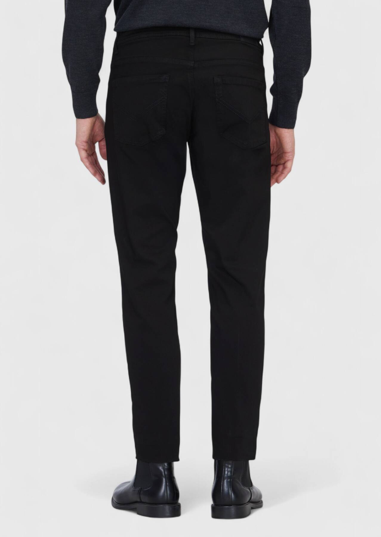 Black Weaving Slim Fit Casual Cotton Blended Trousers