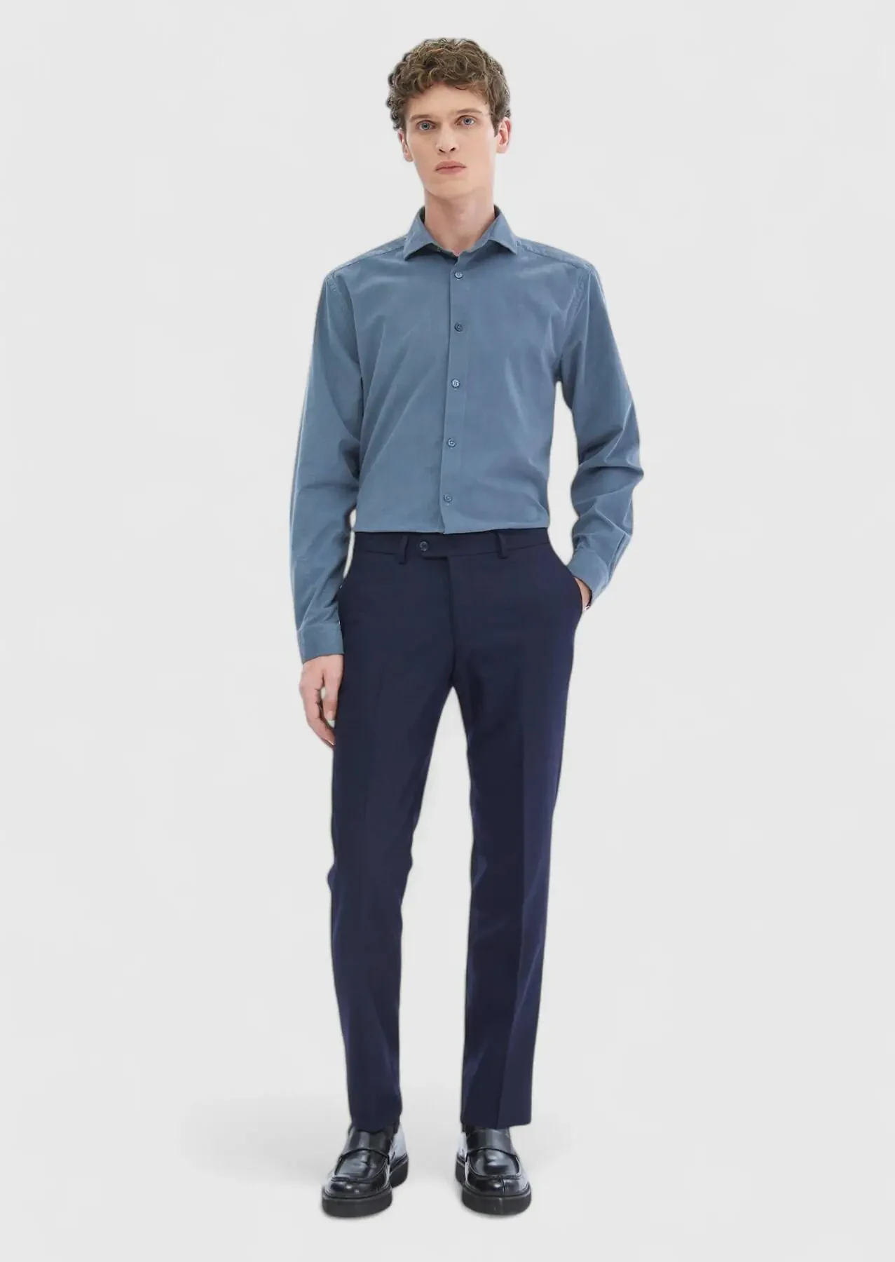 Blue Plain Casual Fit Weaving Casual 100% Cotton Shirt