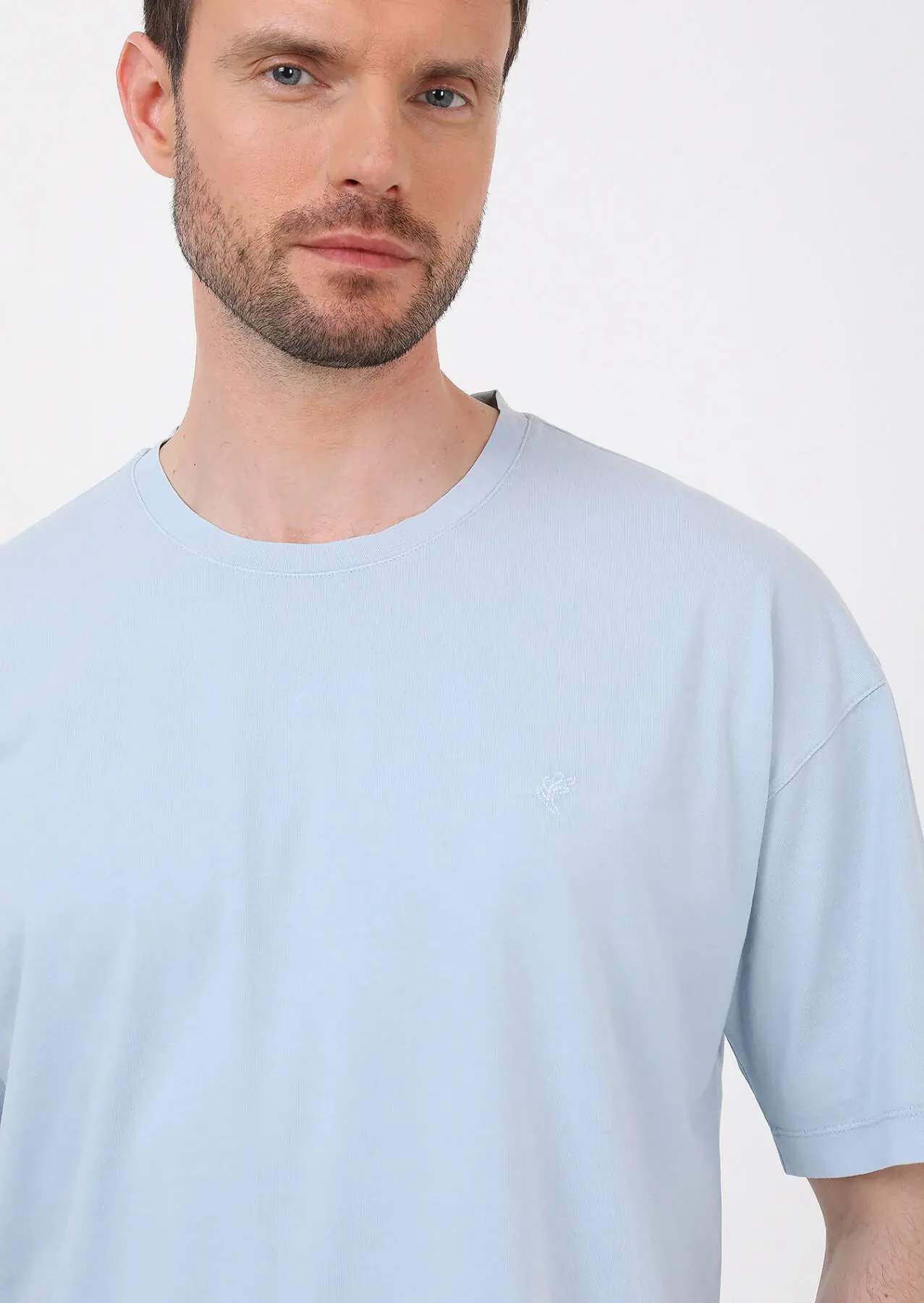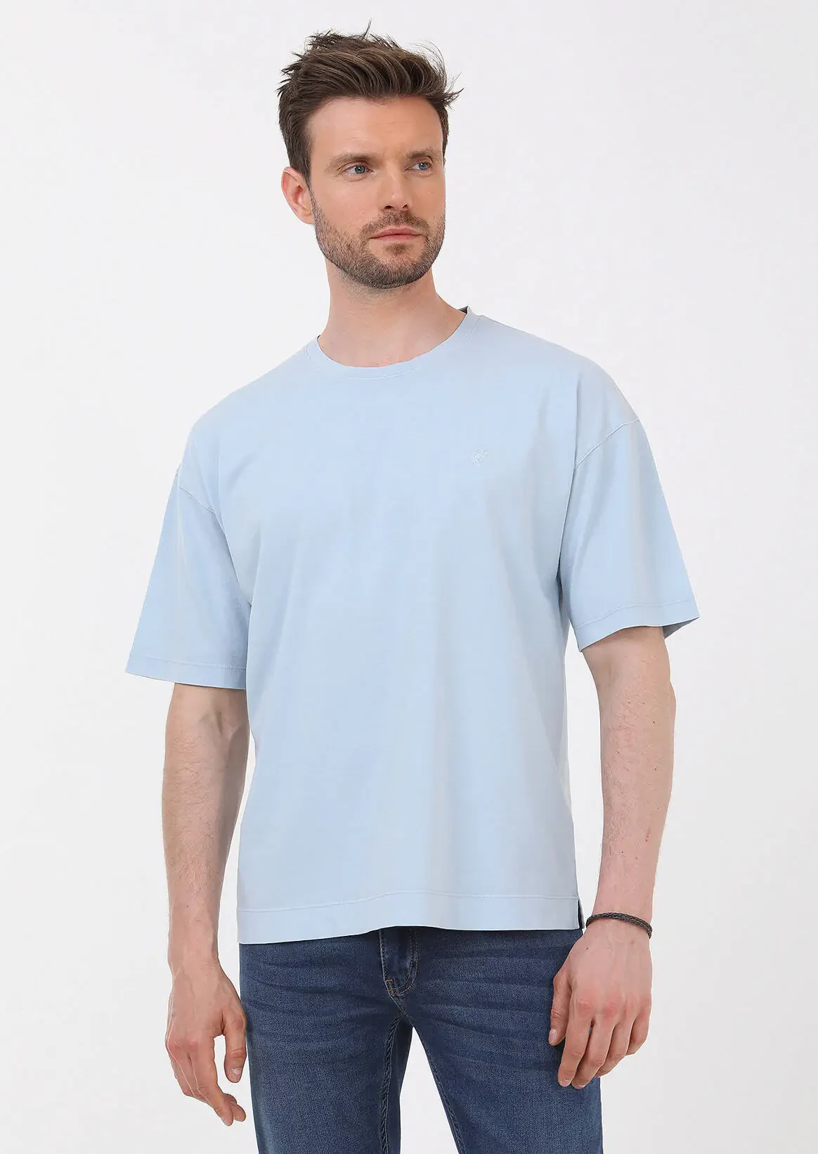 Blue Plain Crew Neck 100% Cotton T-Shirt
