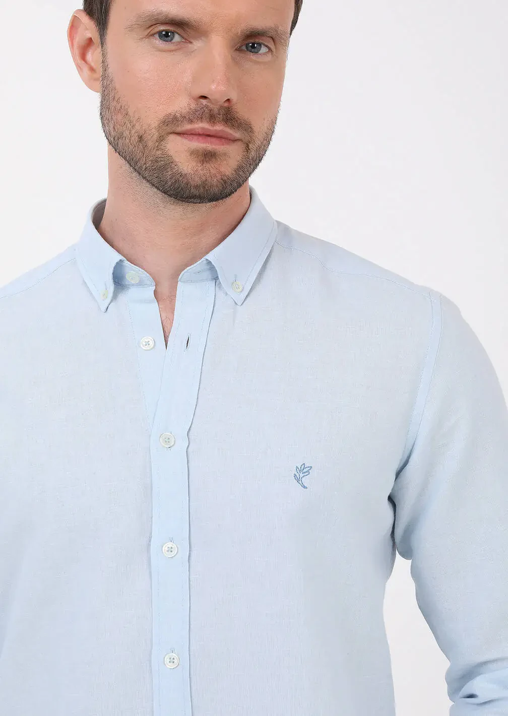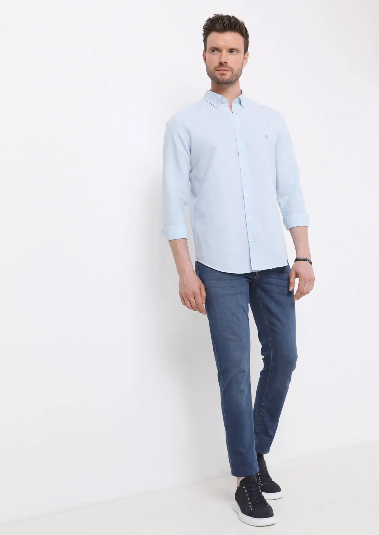 Blue Plain Regular Fit Weaving Casual Cotton Blended Shirt