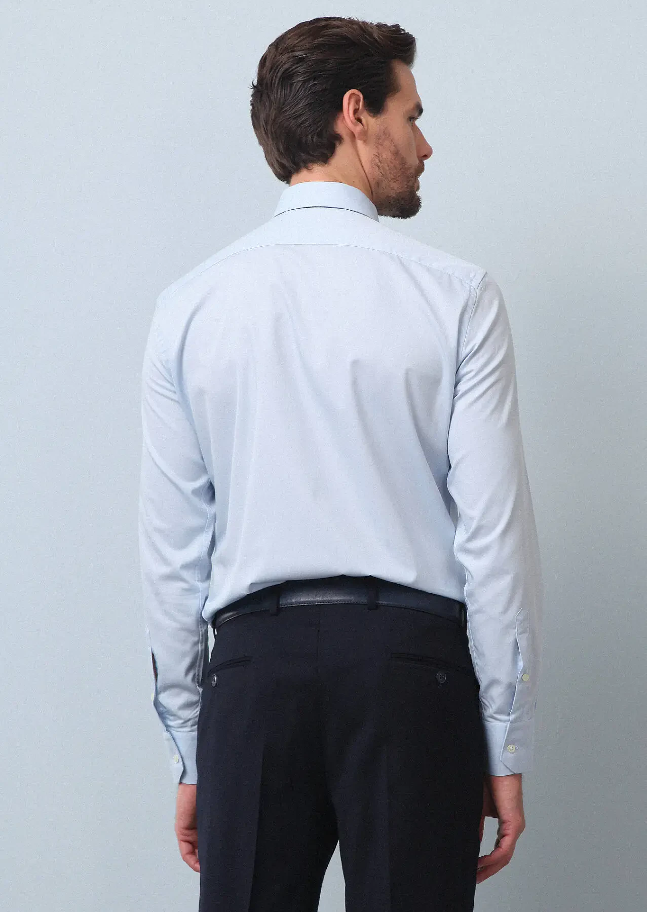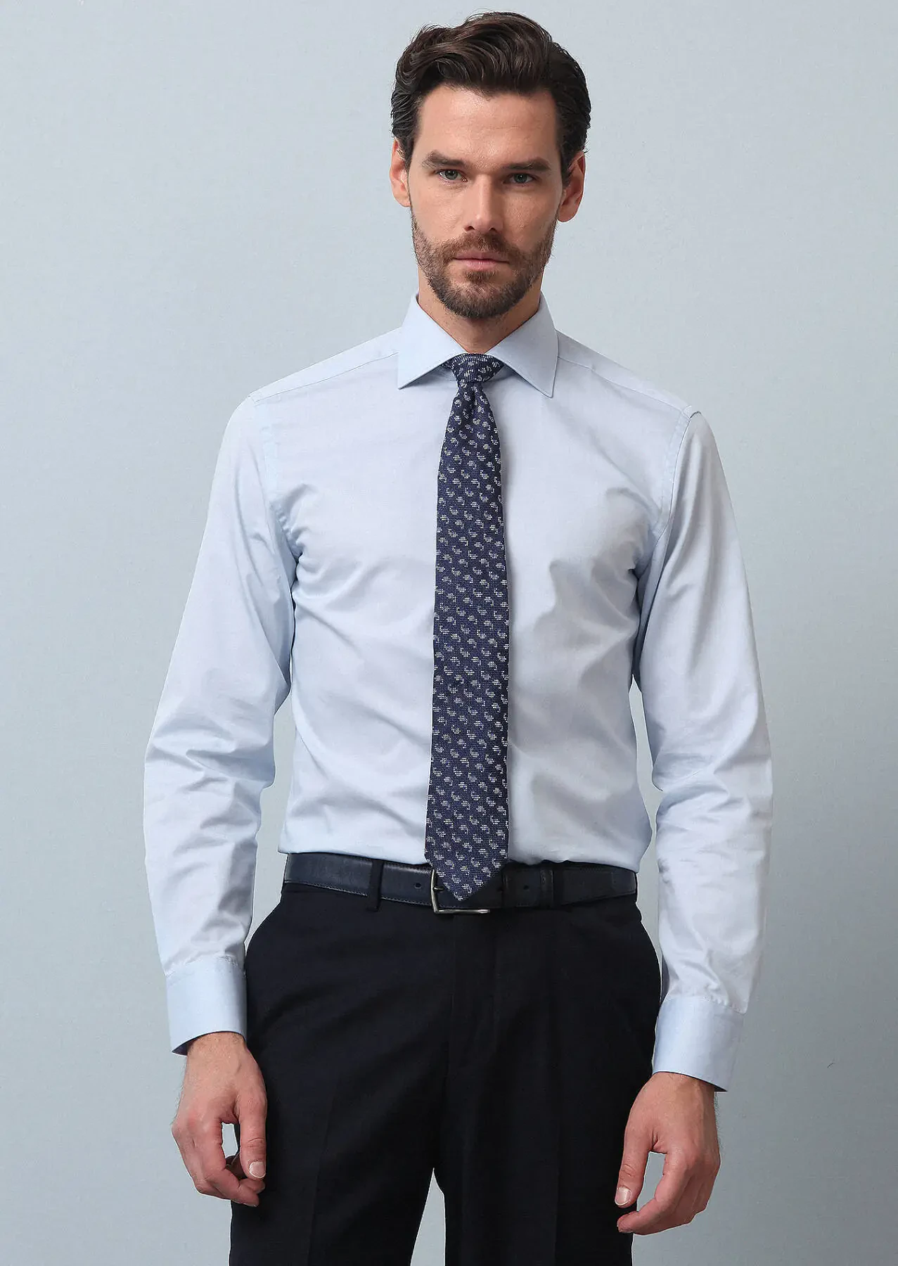 Blue Plain Regular Fit Weaving Classical Cotton Blended Shirt