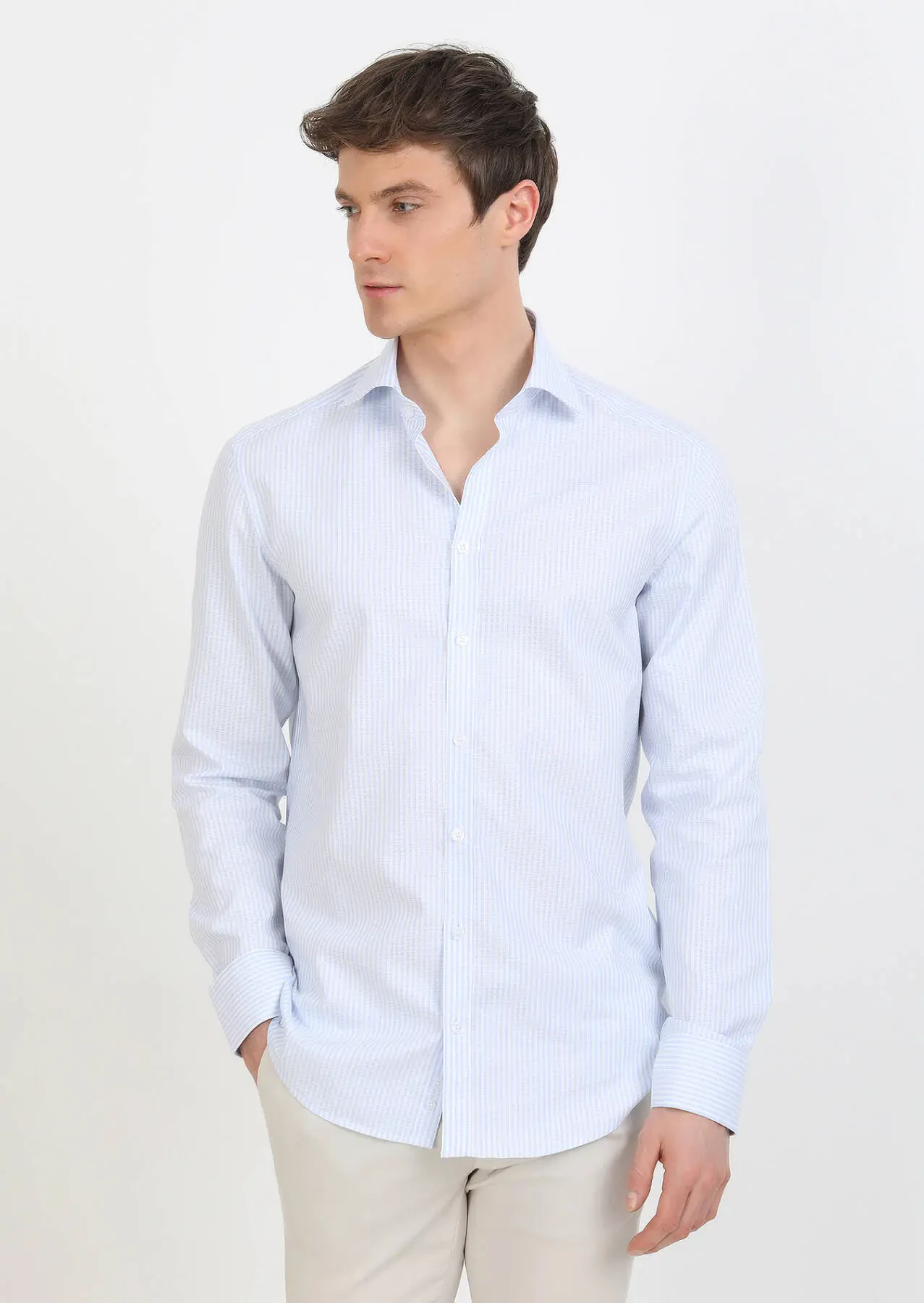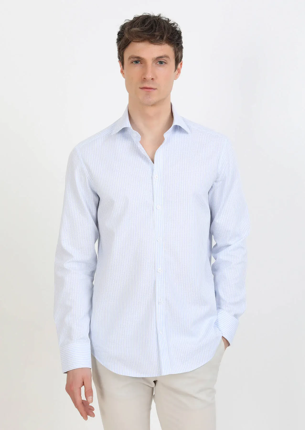 Blue Striped Regular Fit Weaving Classical 100% Cotton Shirt