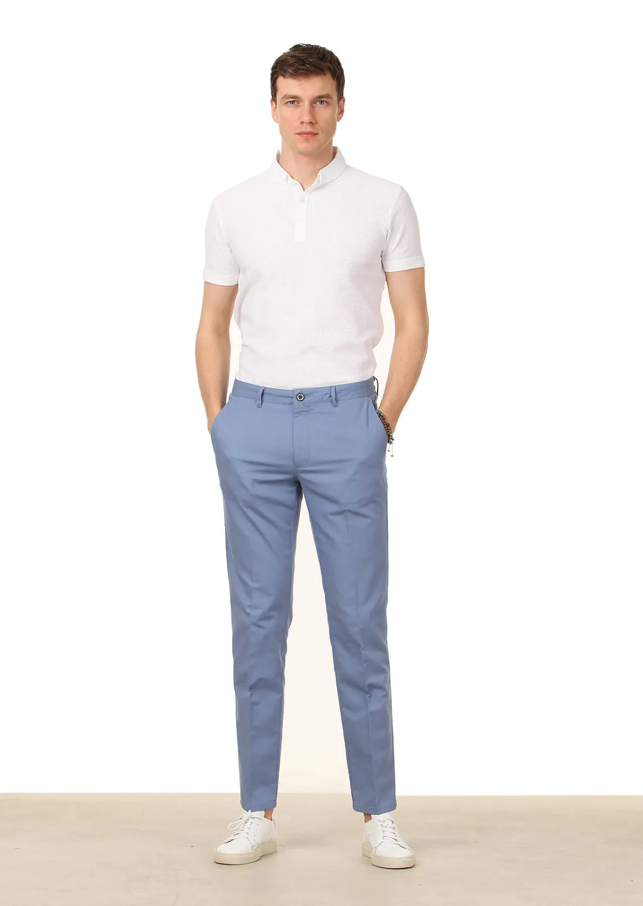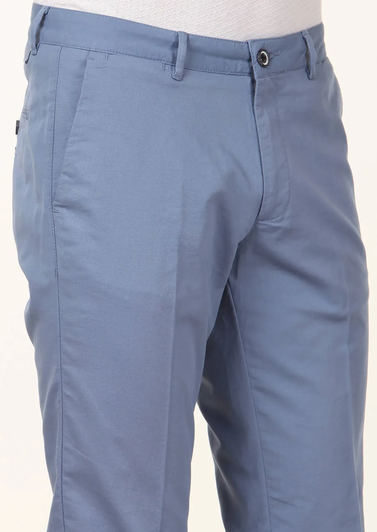 Blue Weaving Regular Fit Casual Cotton Blended Trousers