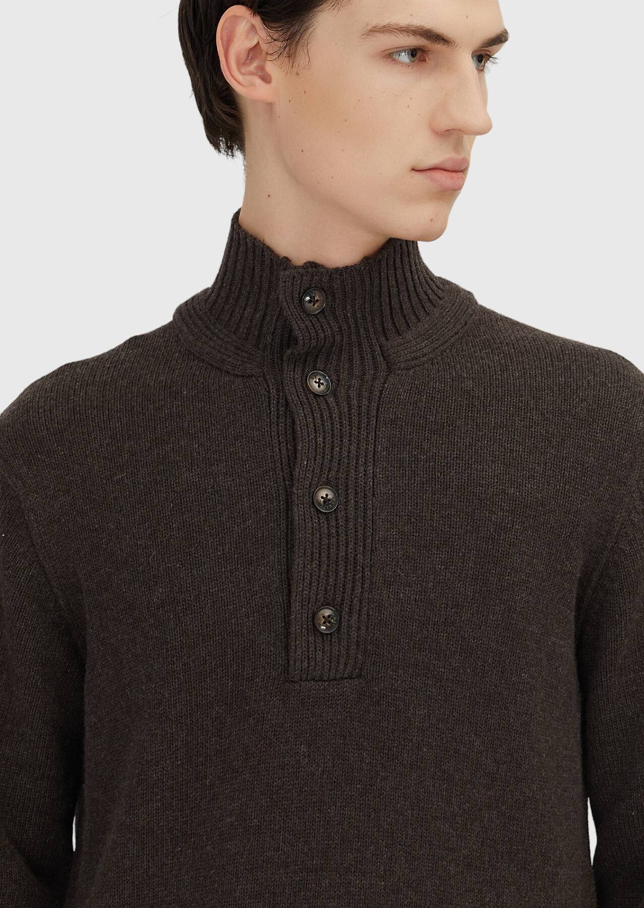 Kaşmir yünlerden dökümlü bir kalıpta üretilmiştir. Düğmeli balıkçı yakası güçlü ve modern bir görünüm katar.