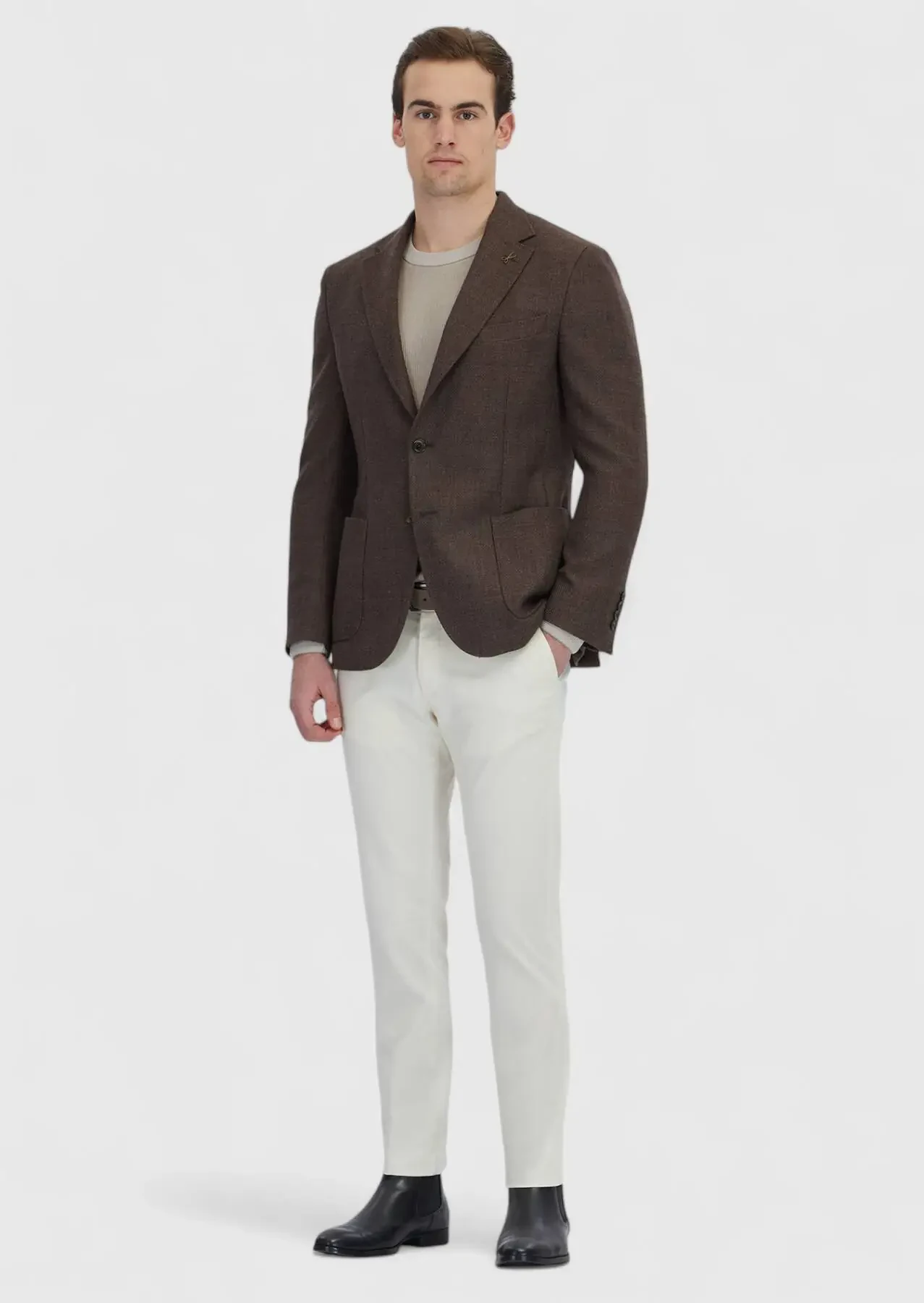 Model: Height: 187 cm, Chest: 98 cm, Waist: 78 cm, Hips: 96 cm, Size: 48