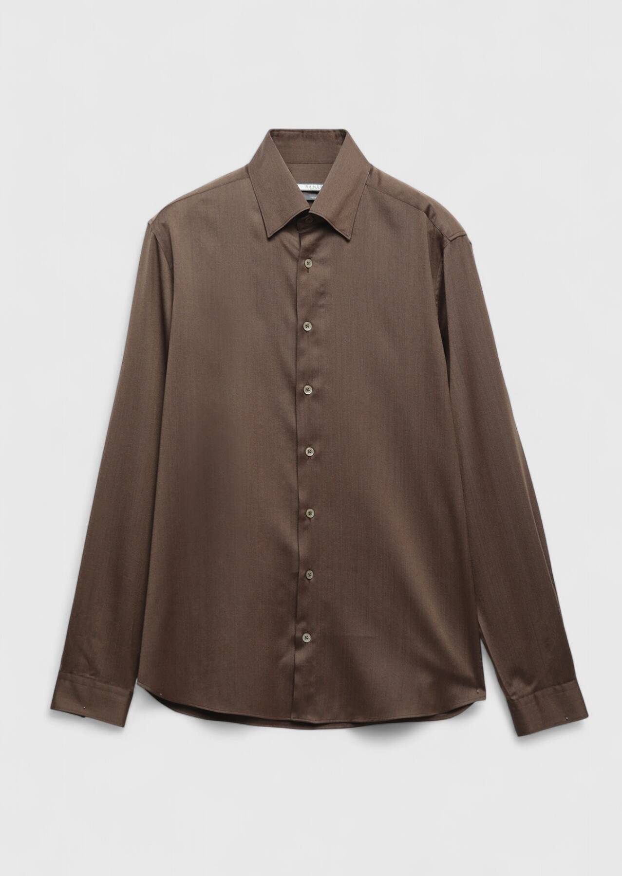 Brown Plain Casual Fit Weaving Casual Silk Blended Shirt