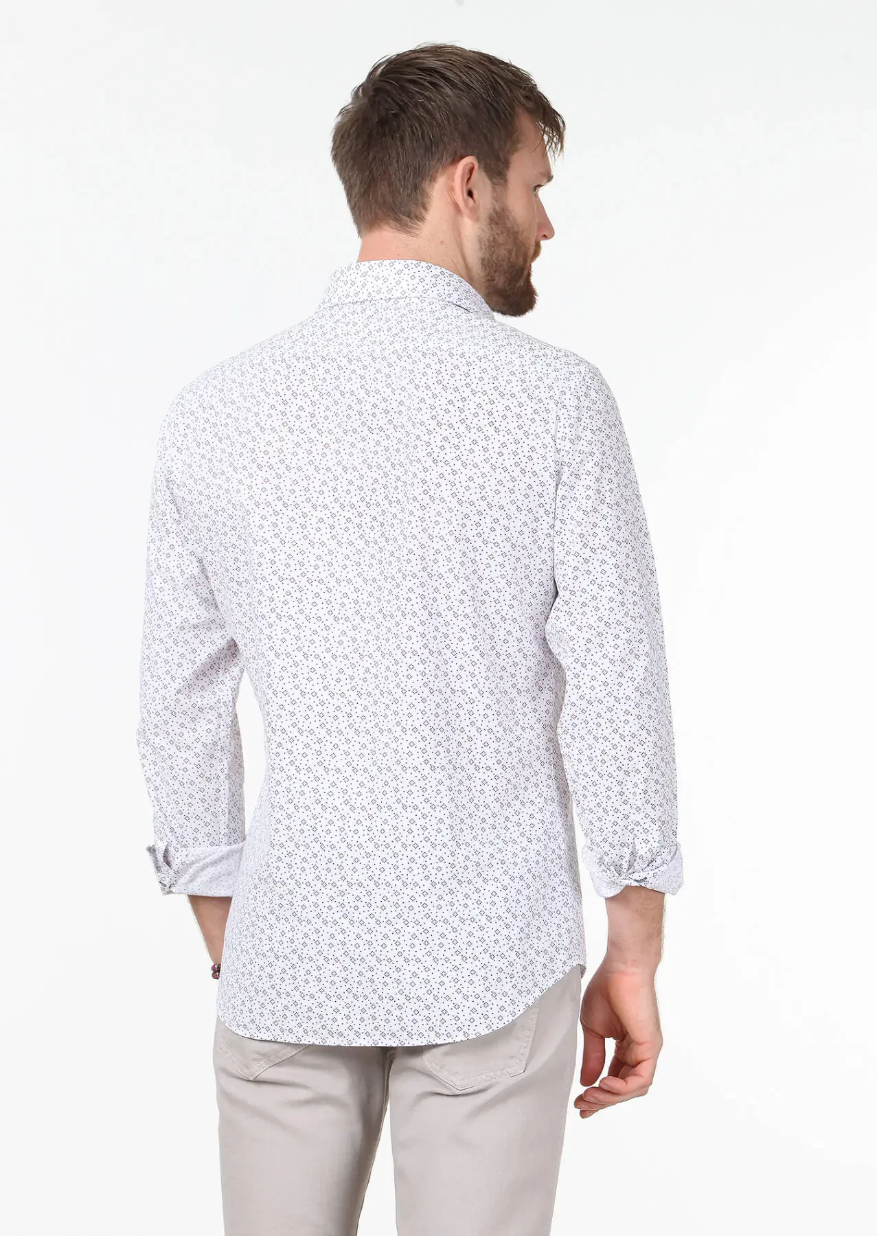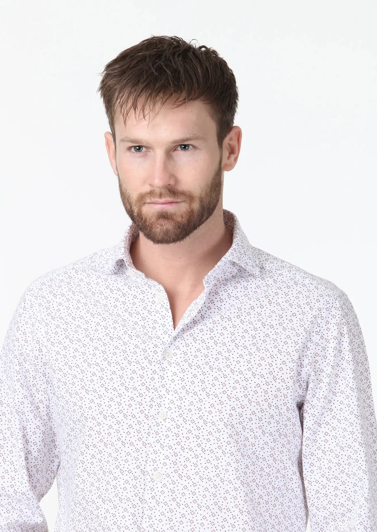 Burgundy Printed Slim Fit Weaving Casual 100% Cotton Shirt