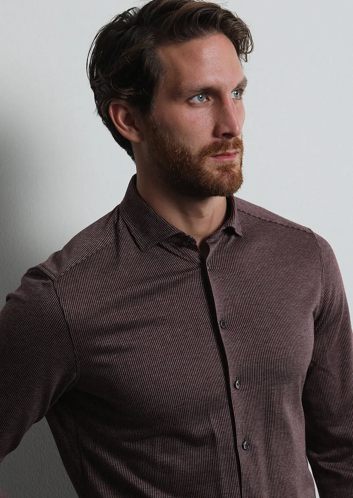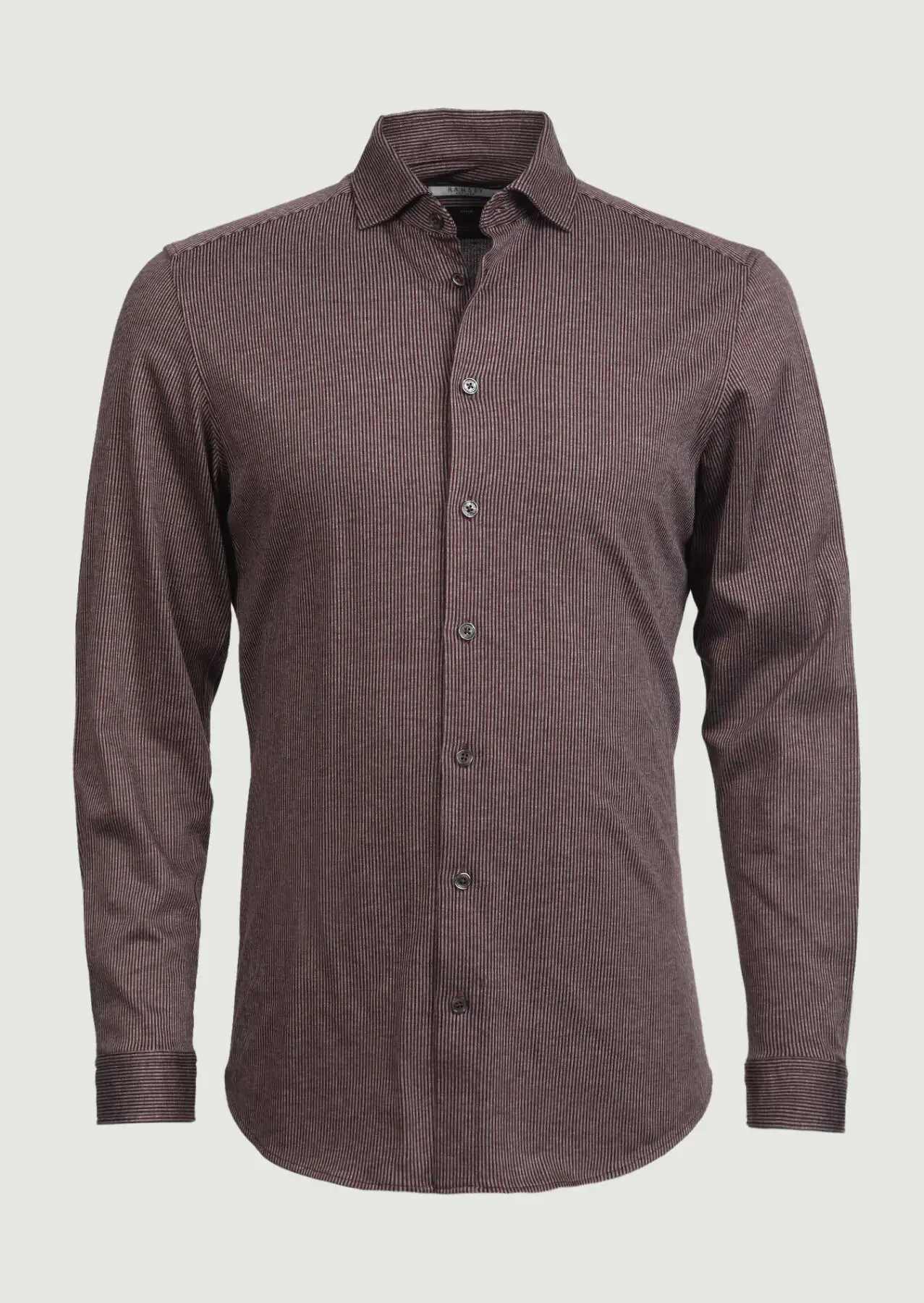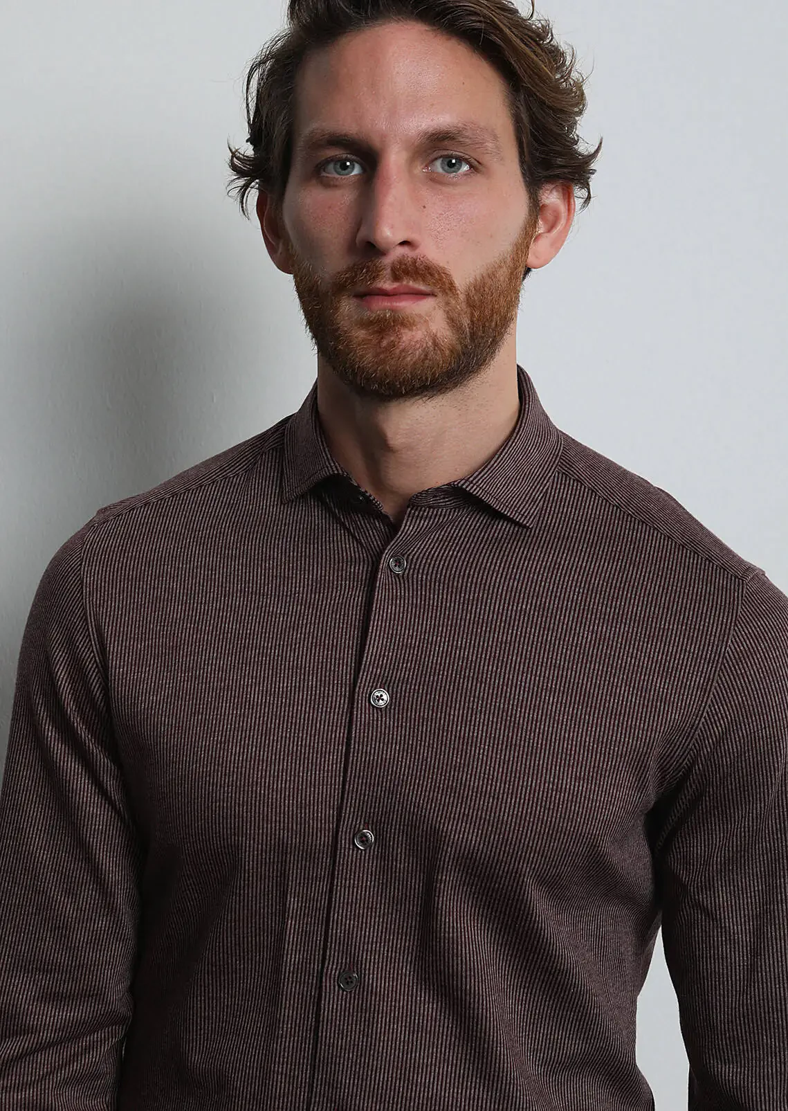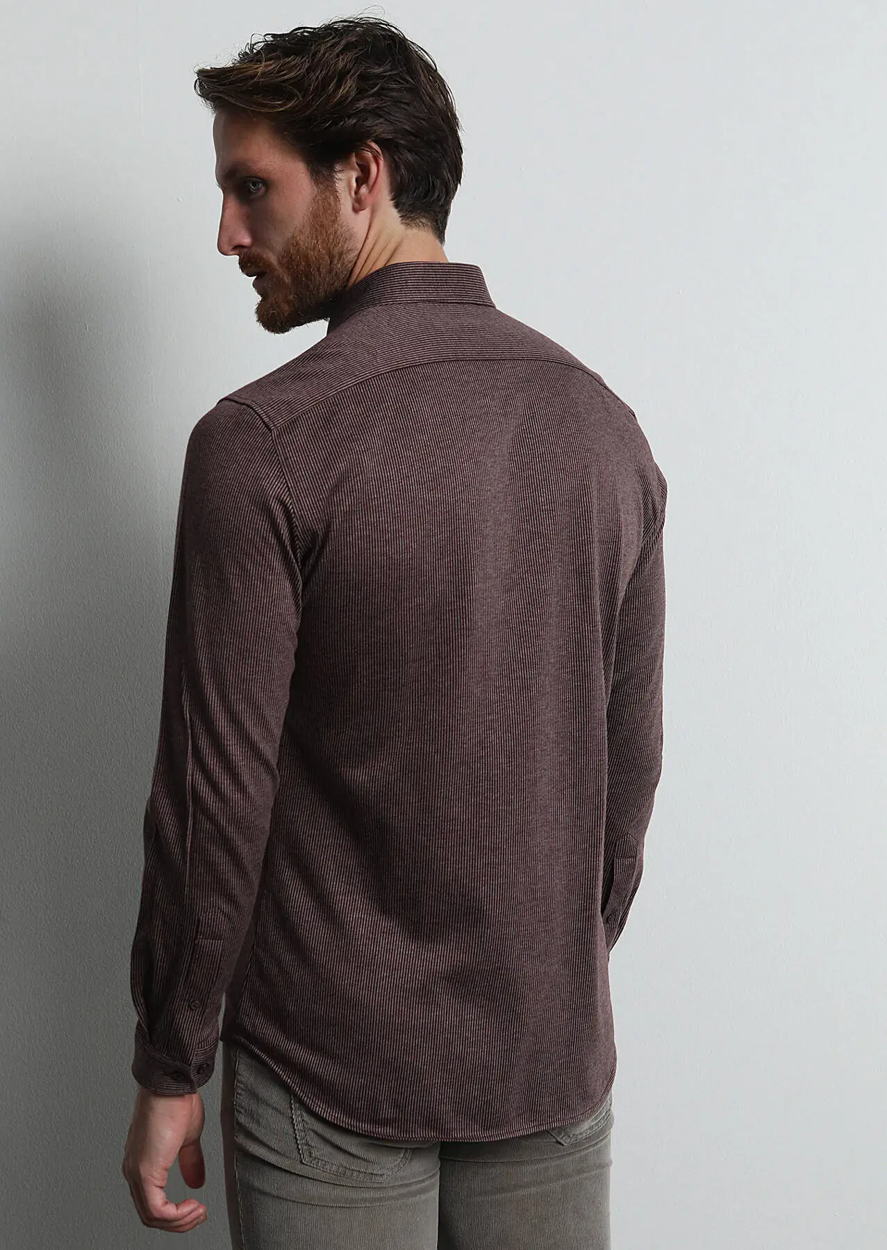 Burgundy Striped Slim Fit Knitting Casual 100% Cotton Shirt