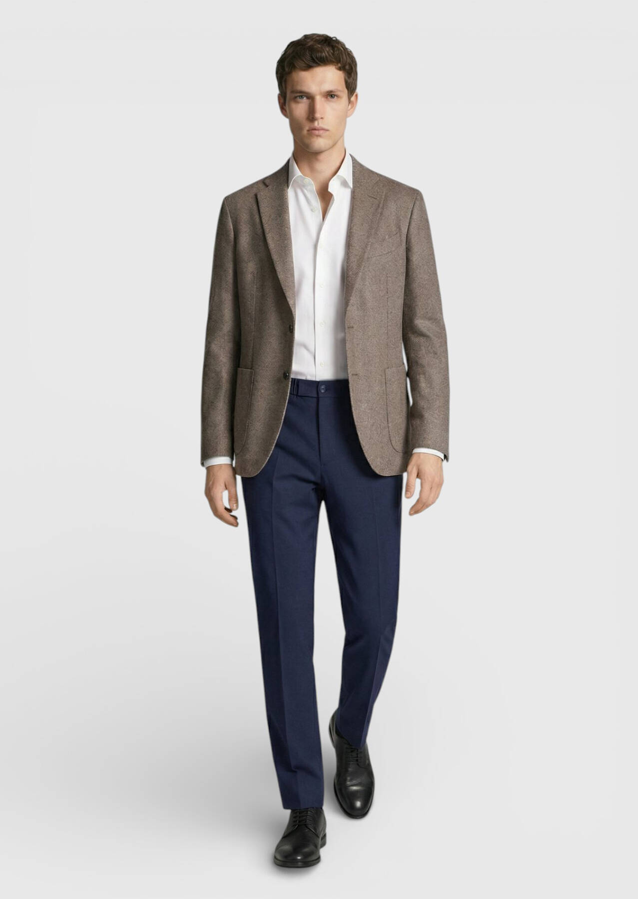 Model: Height: 187 cm, Chest: 98 cm, Waist: 78 cm, Hips: 96 cm, Size: 48