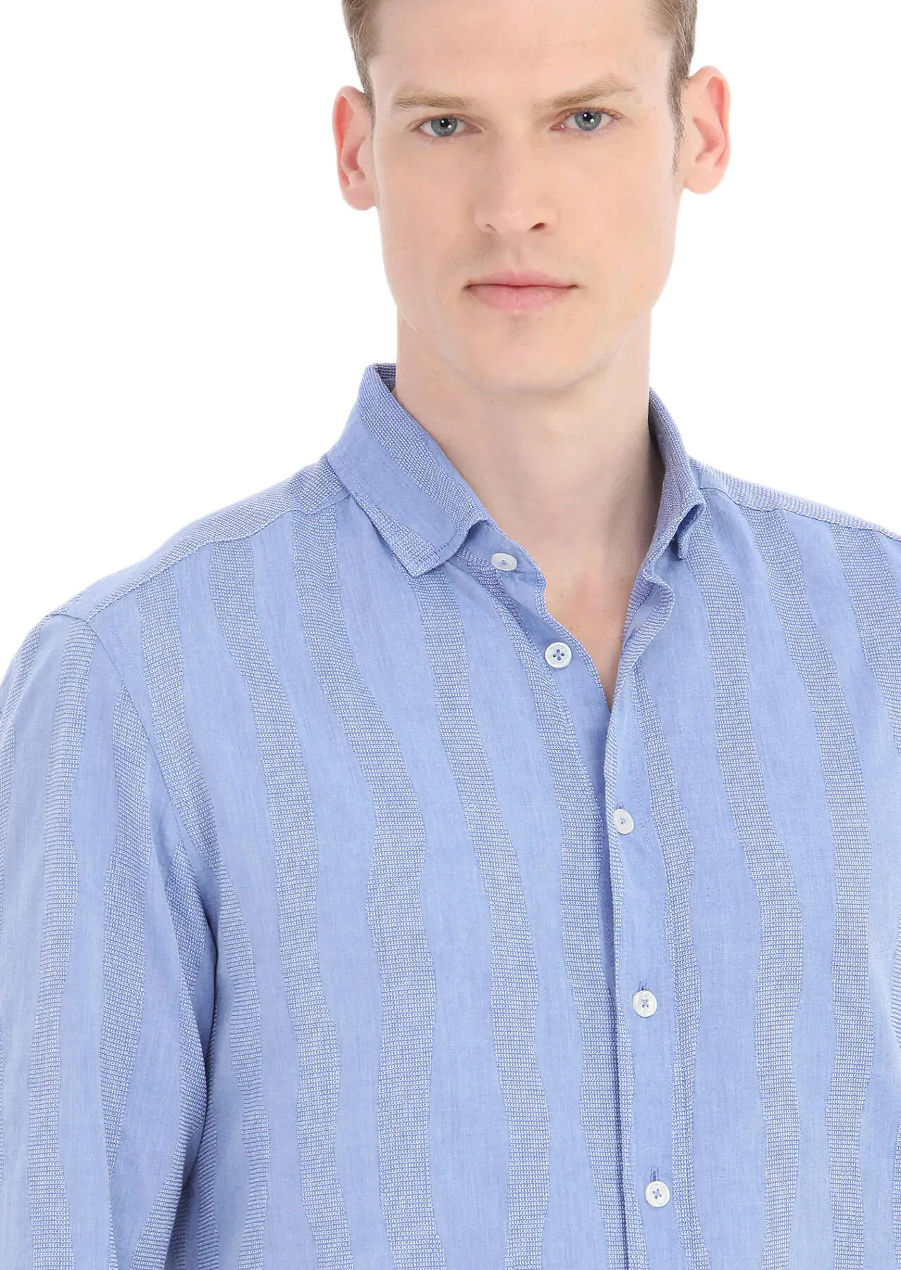 Dark Blue Striped Regular Fit Weaving Casual 100% Cotton Shirt