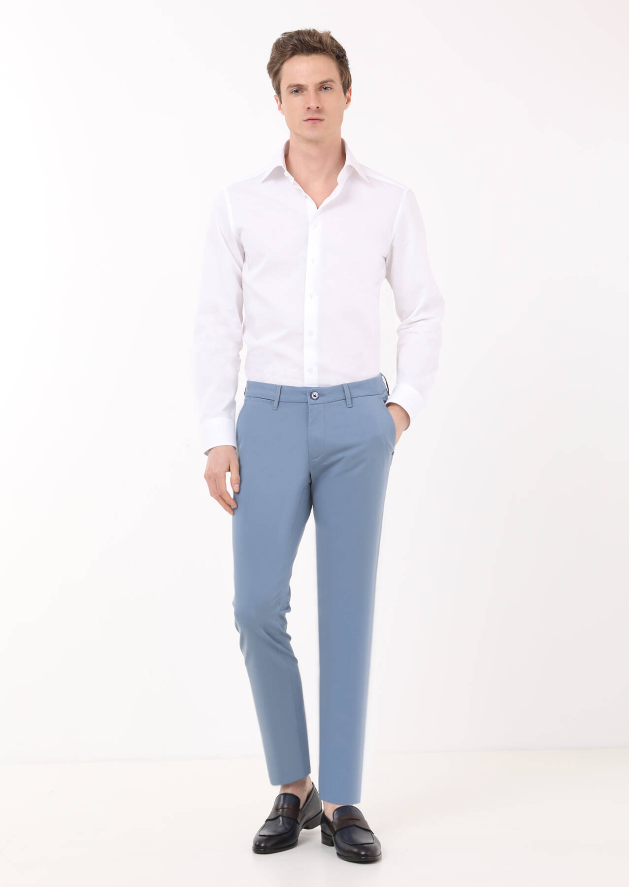 Dark Blue Weaving Regular Fit Casual Trousers