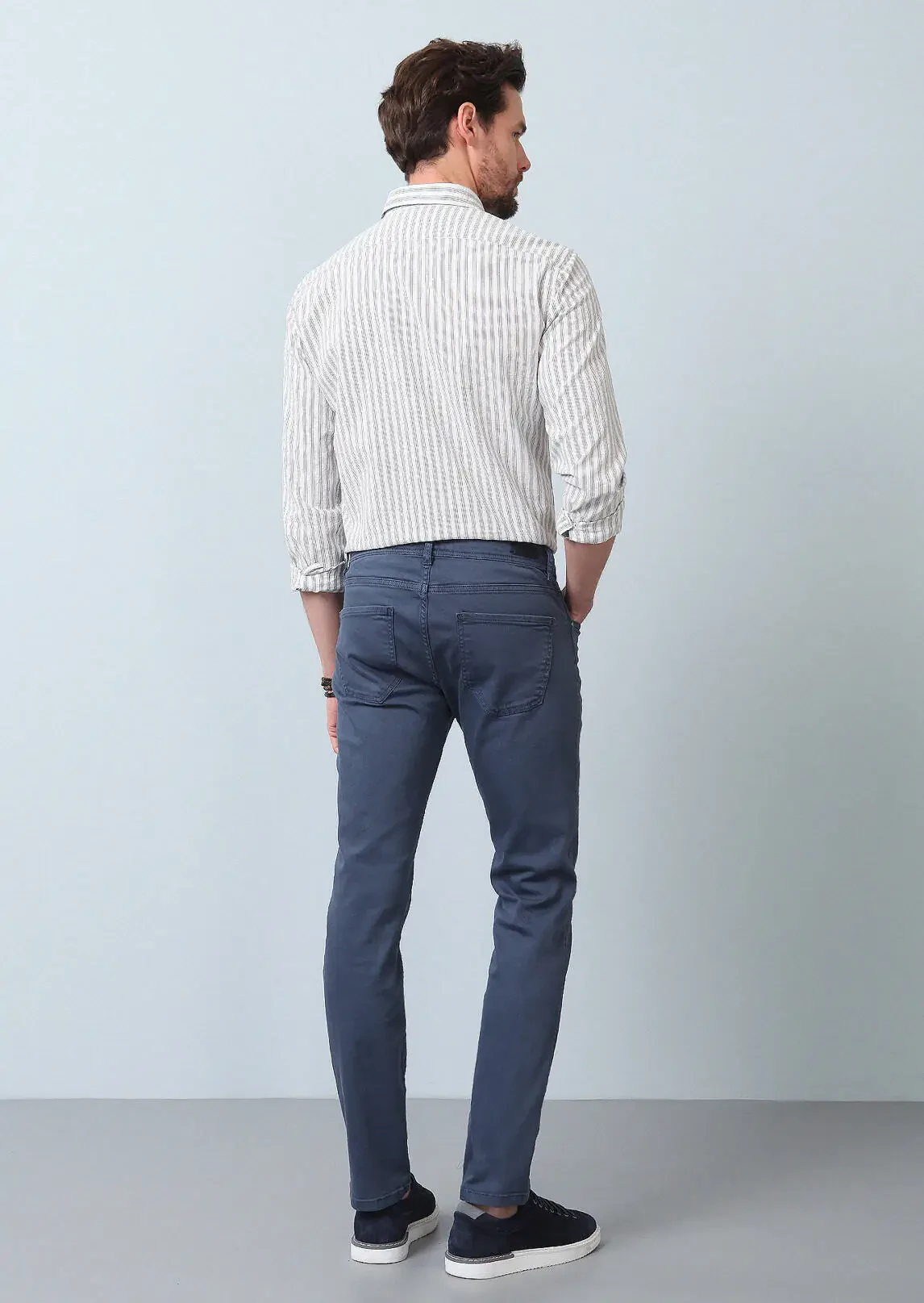 Dark Blue Weaving Slim Fit Casual Cotton Blended Trousers