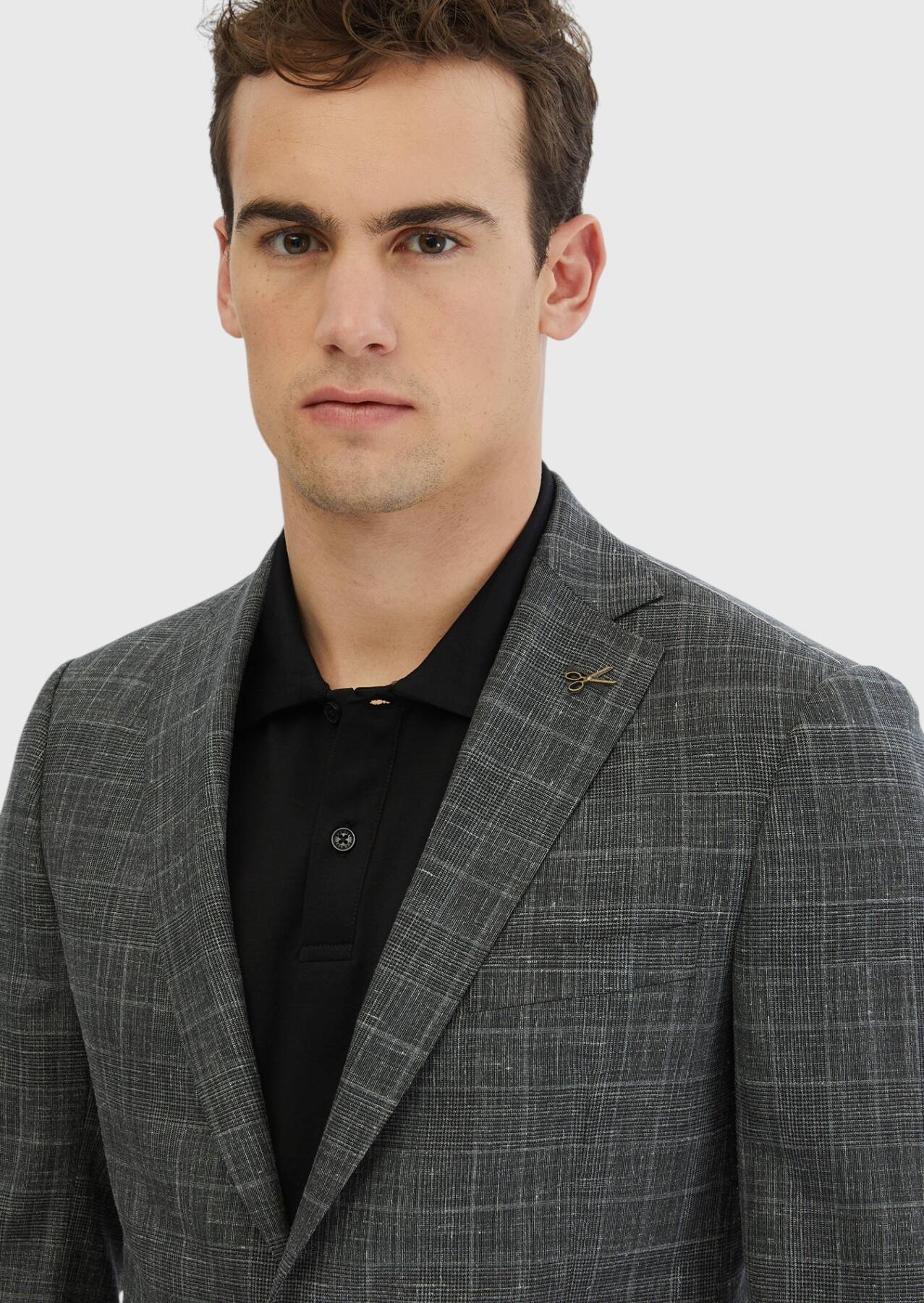 Model: Height: 187 cm, Chest: 98 cm, Waist: 78 cm, Hips: 96 cm, Size: 48