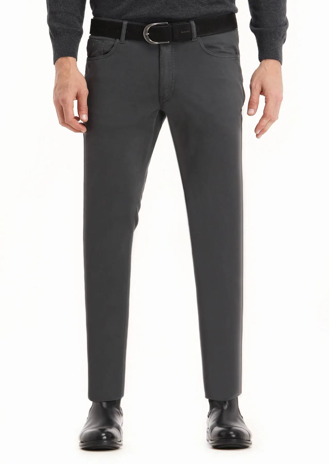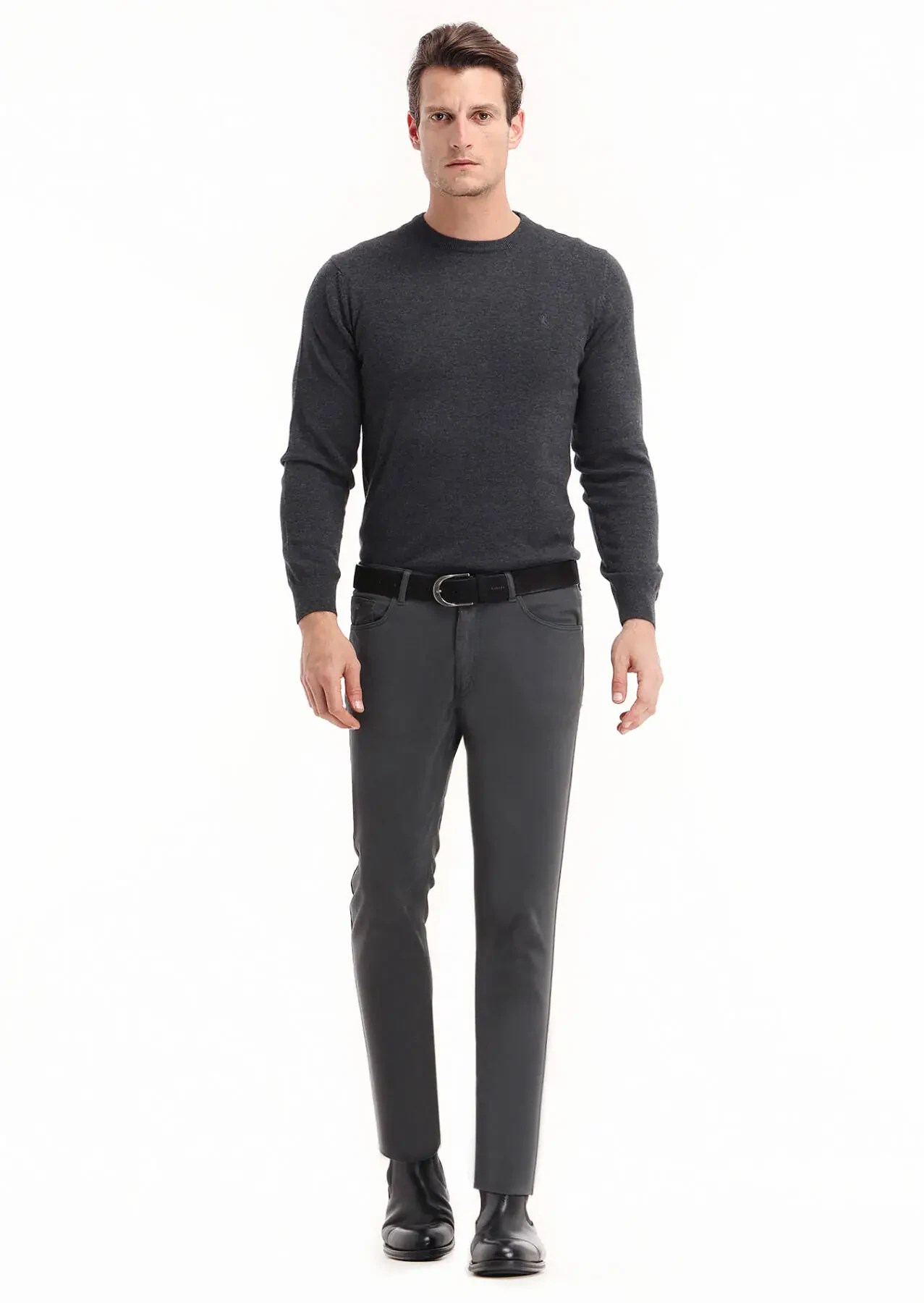 Dark Grey Weaving Slim Fit Casual Cotton Blended Trousers