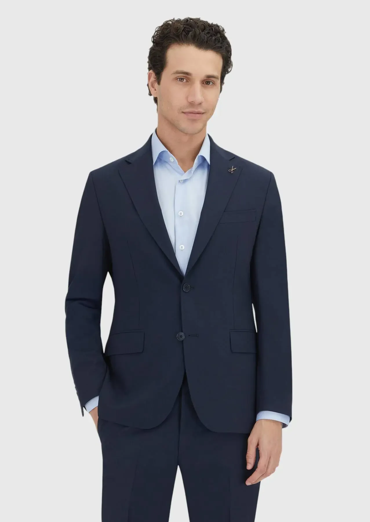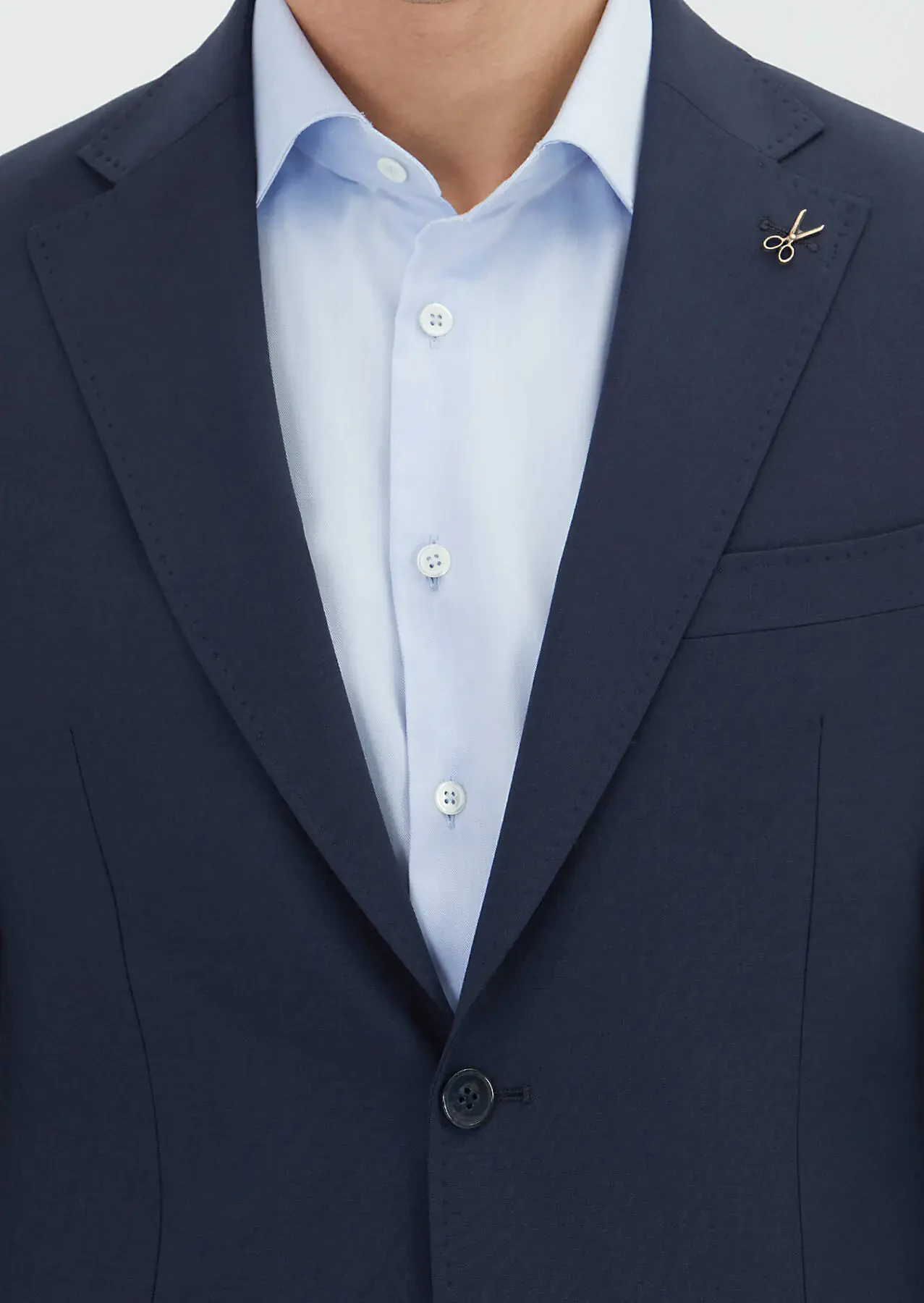 Dark Navyblue Striped Zeroweight Slim Fit Wool Blended Suit