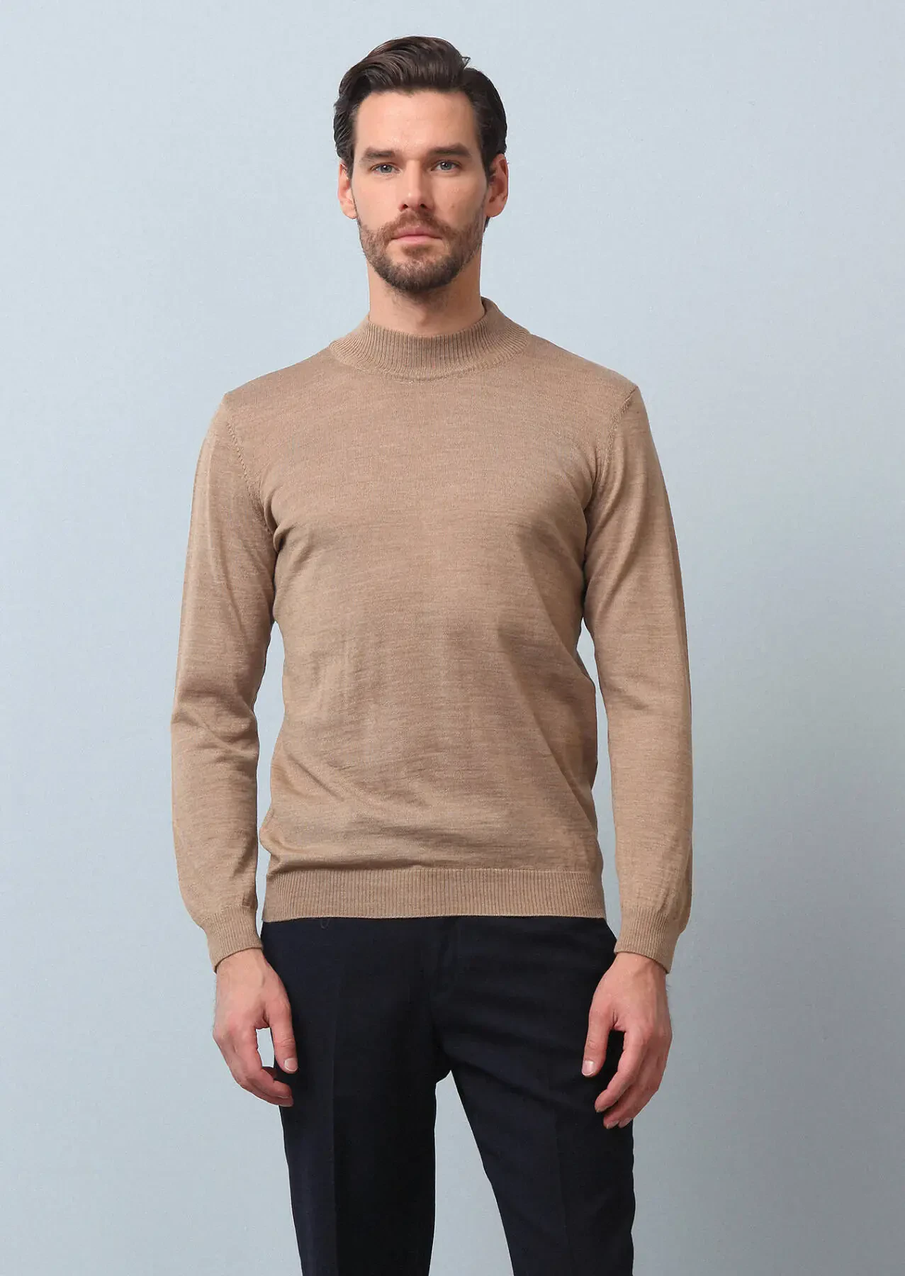 Deve Tüyü Bato Yaka Düz Örgü Yün Karışımlı Triko Kazak
