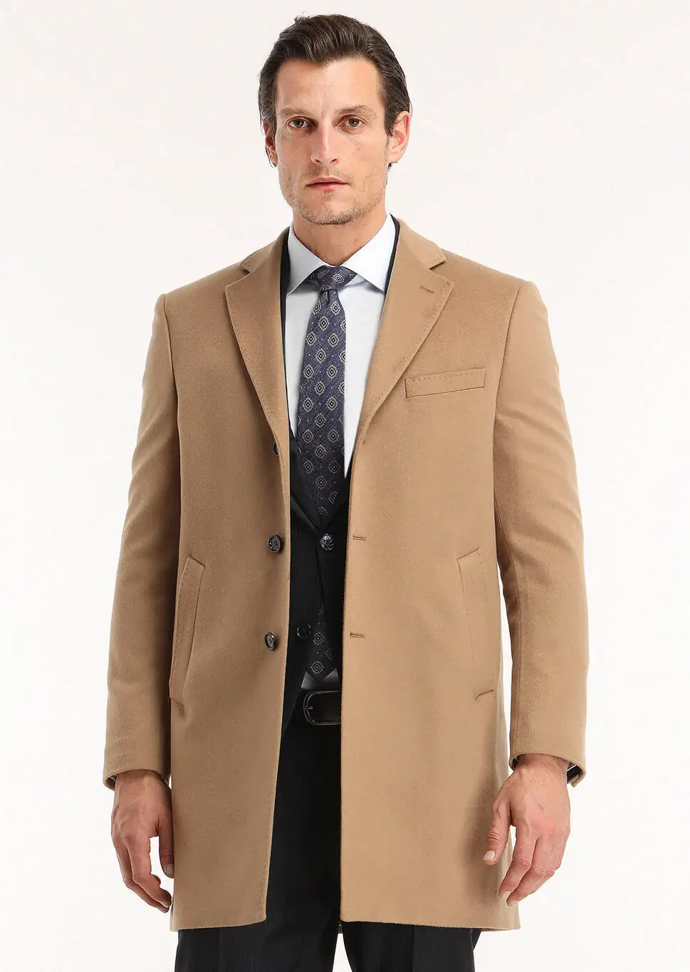 Deve Tüyü Regular Fit Kelebek Yaka Klasik Dokuma Palto