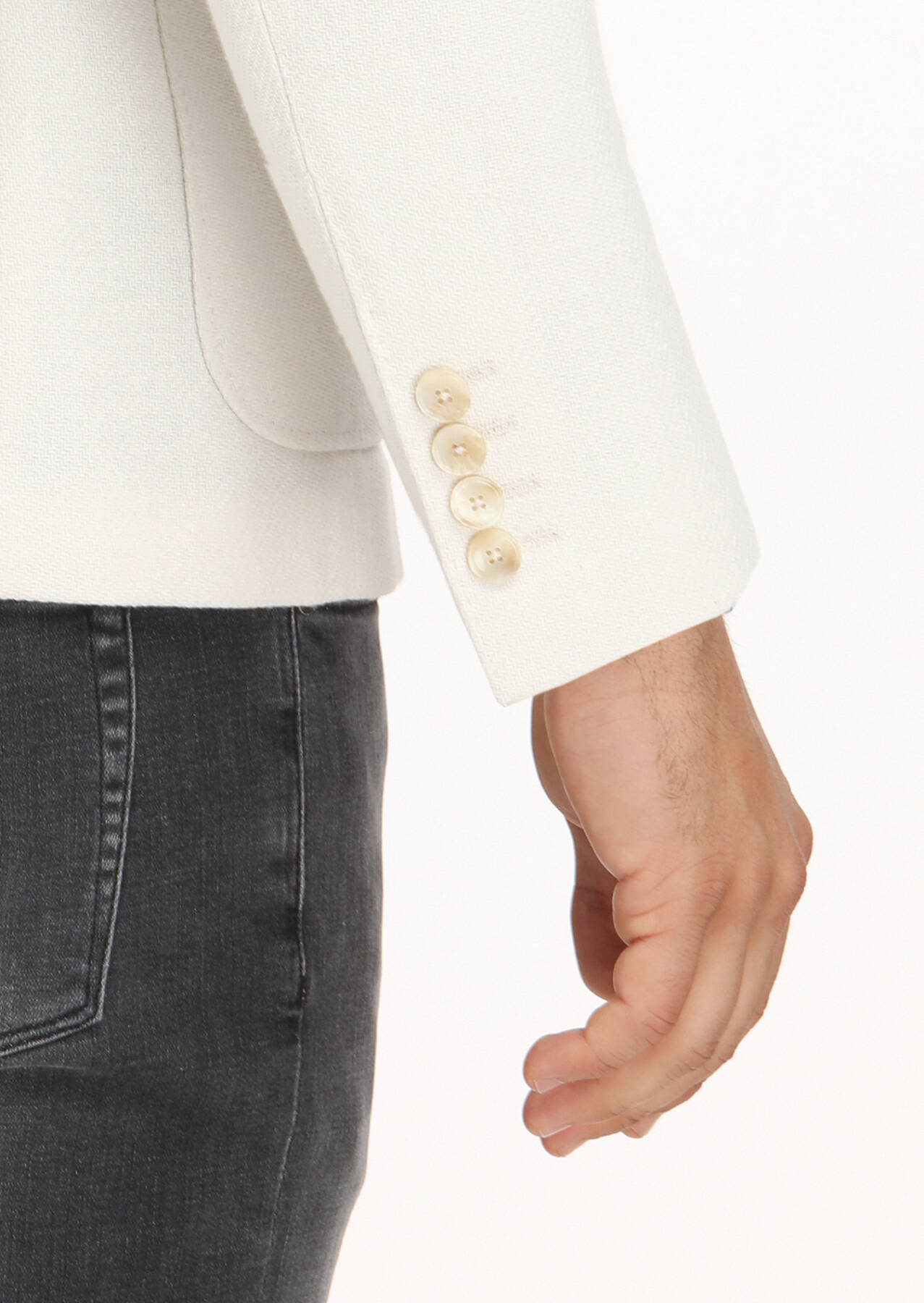 Model: Height: 190 cm, Chest: 99 cm, Waist: 82 cm, Hips: 99 cm, Size: 48