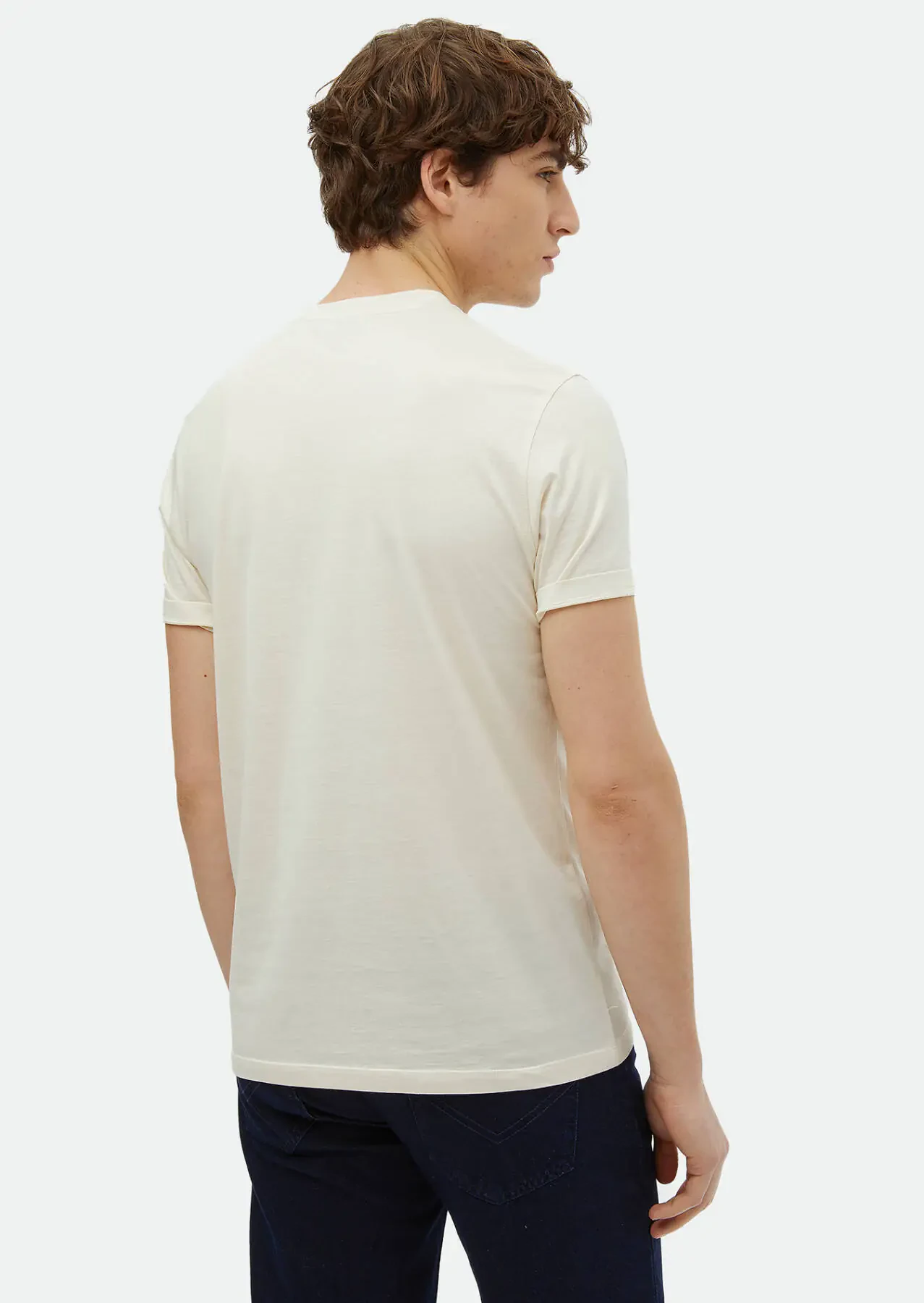 Ecru Plain Crew Neck Silk Blended T-Shirt