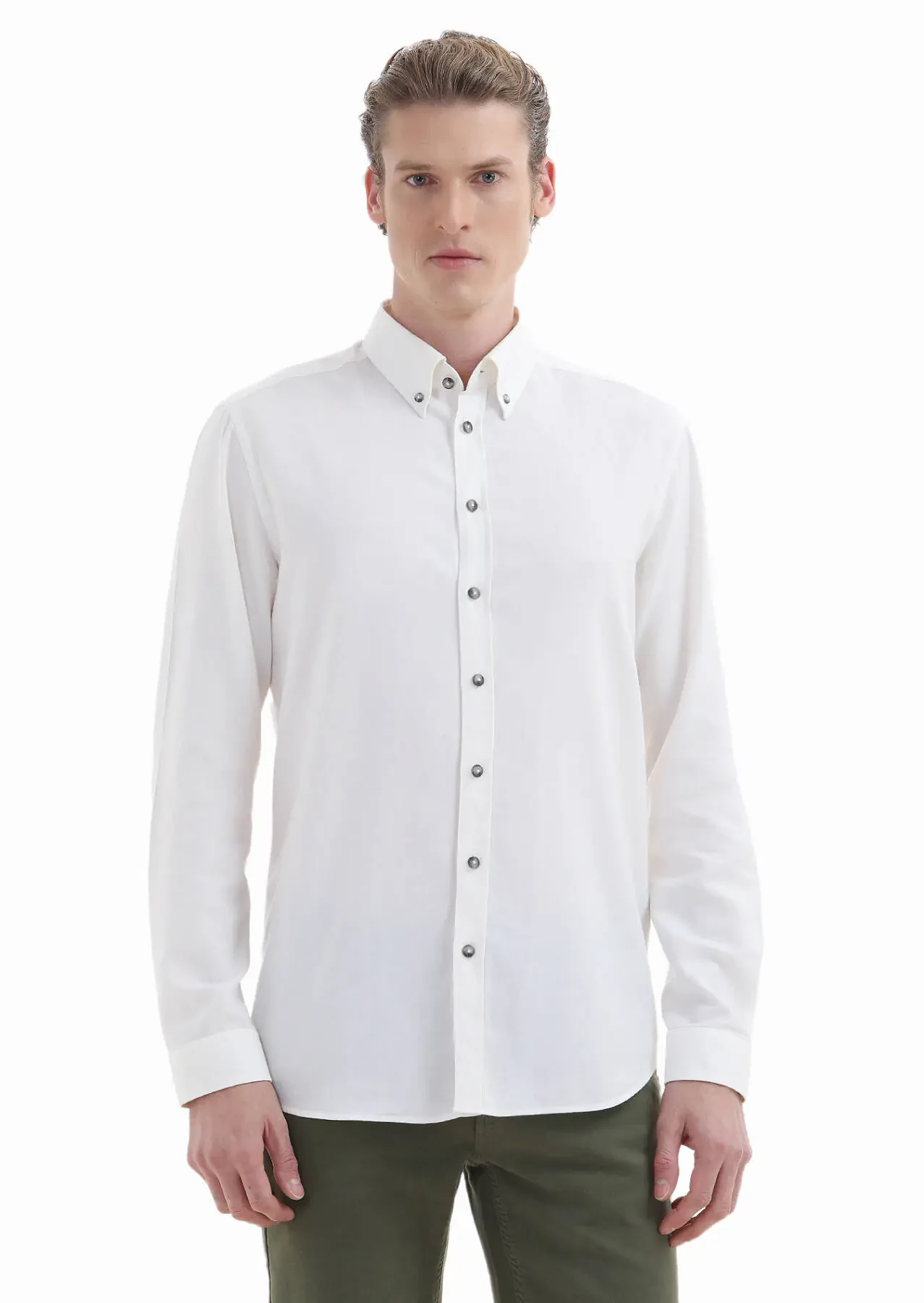 Ecru Plain Regular Fit Weaving Casual Wool Blended Shirt