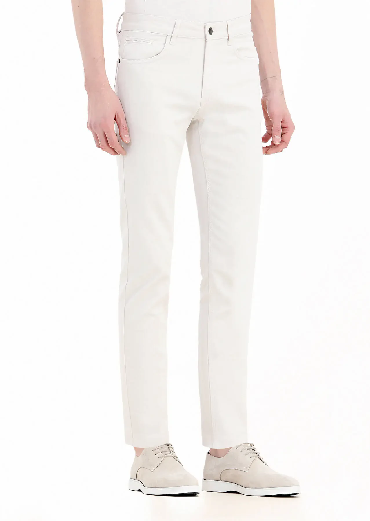 Ecru Weaving Slim Fit Casual Cotton Blended Trousers