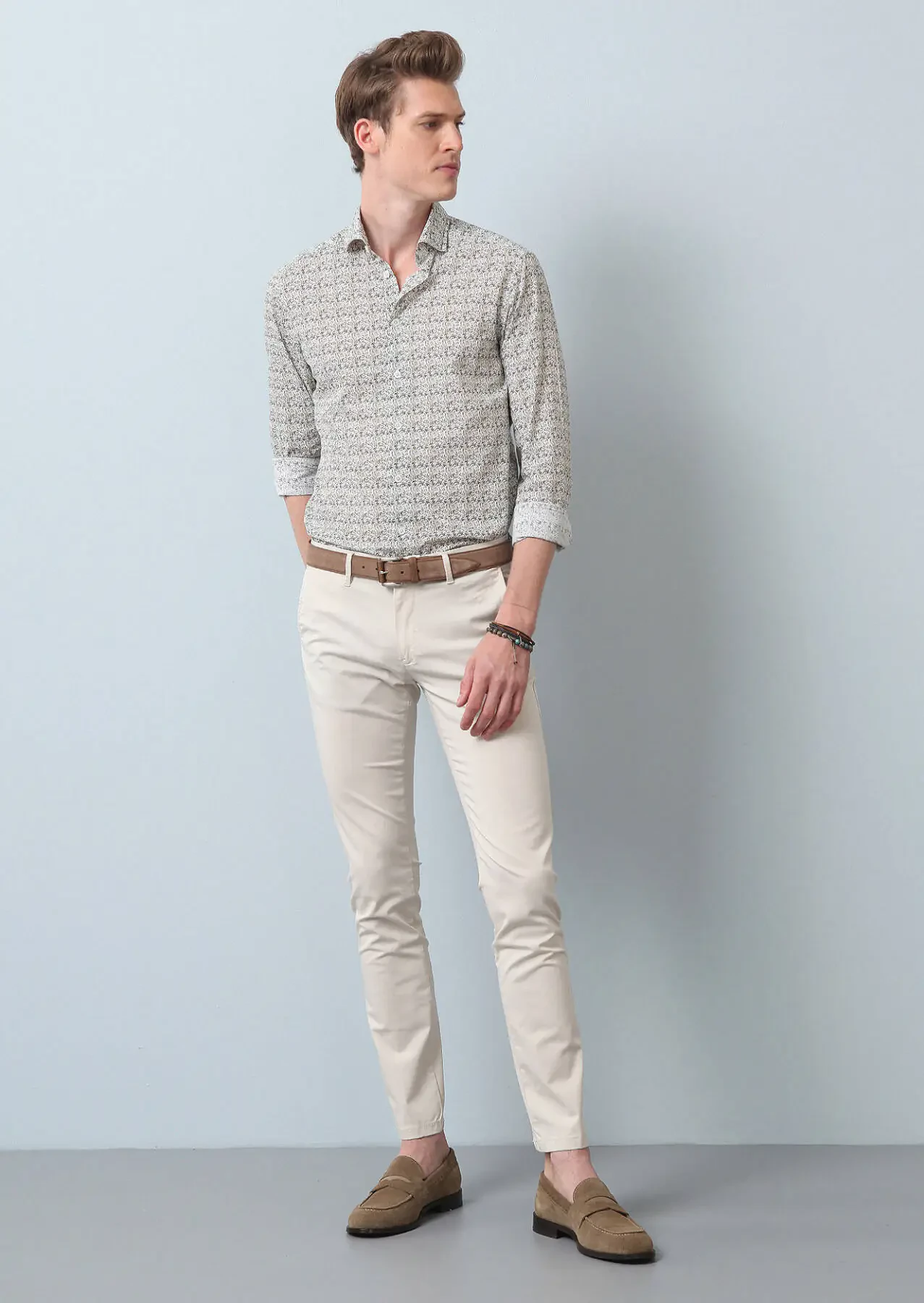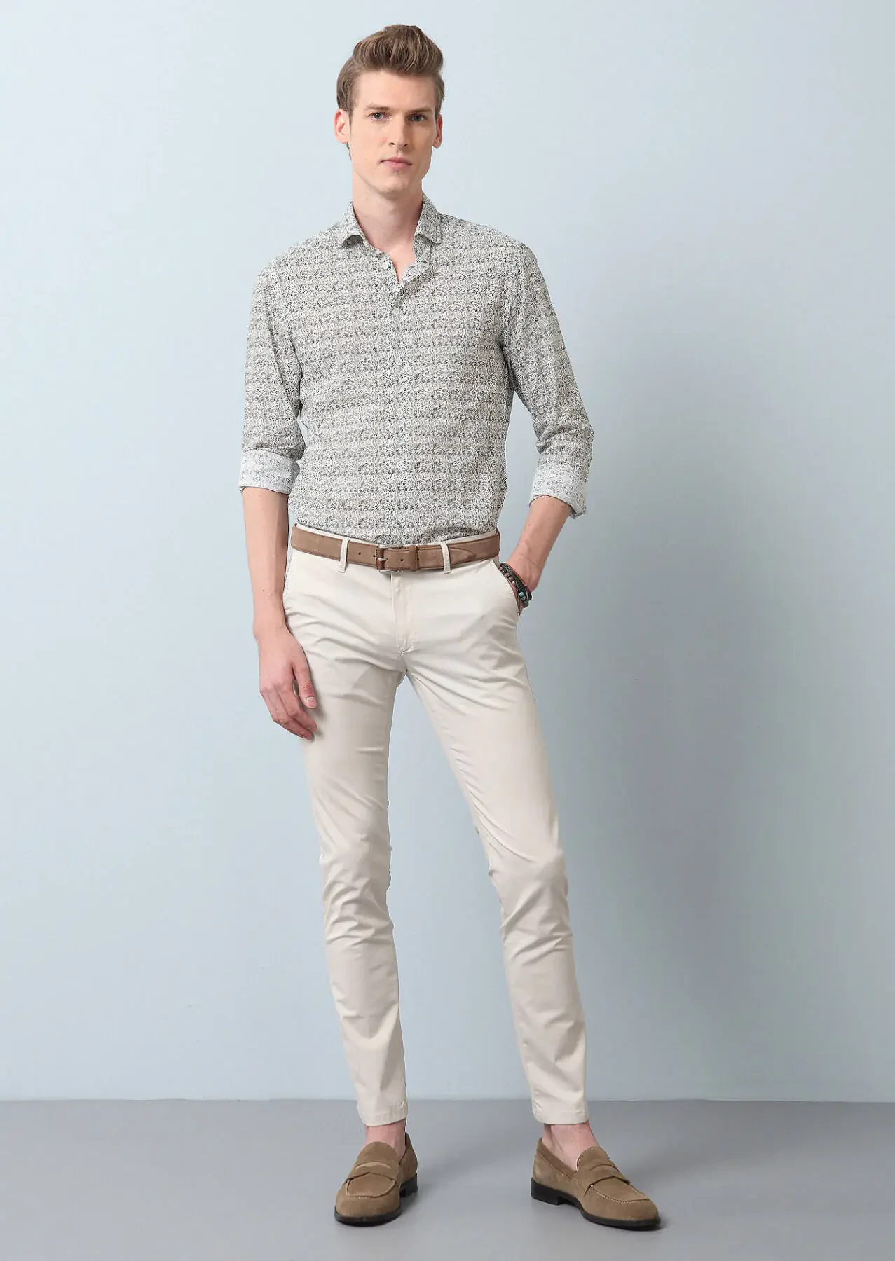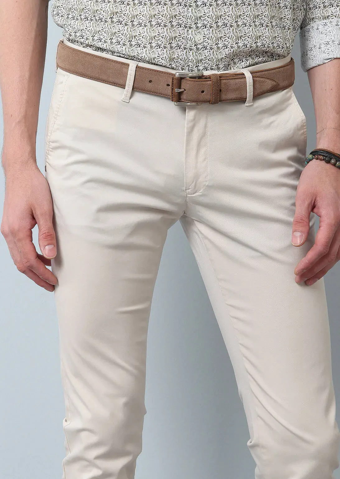 Ecru Weaving Slim Fit Smart Casual Trousers
