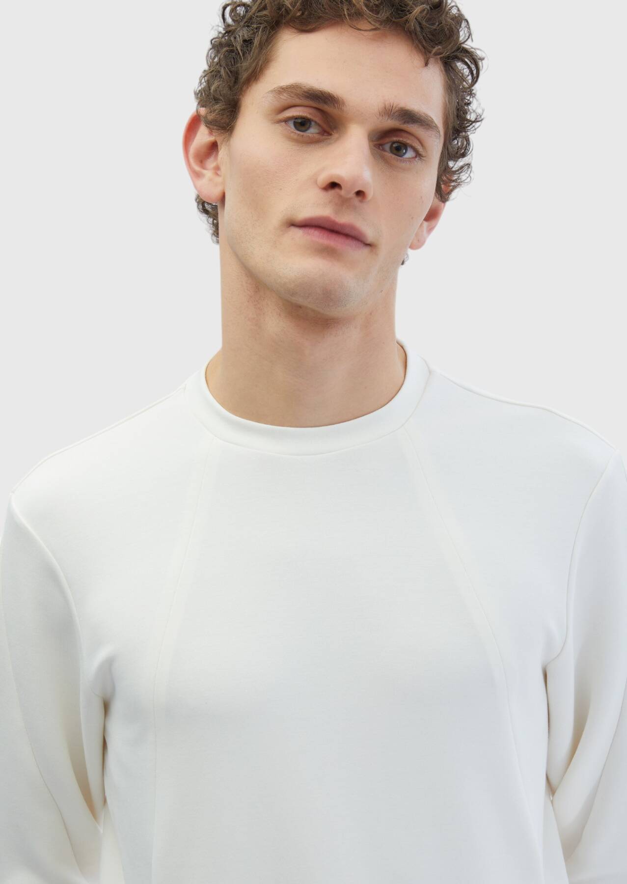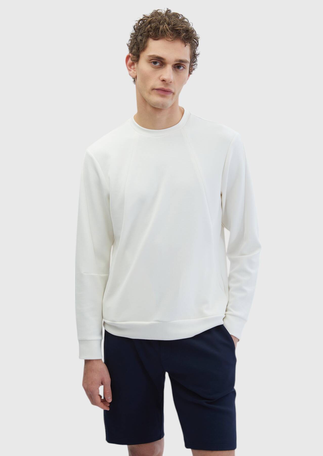 Ekru Bisiklet Yaka Düz Sweatshırt
