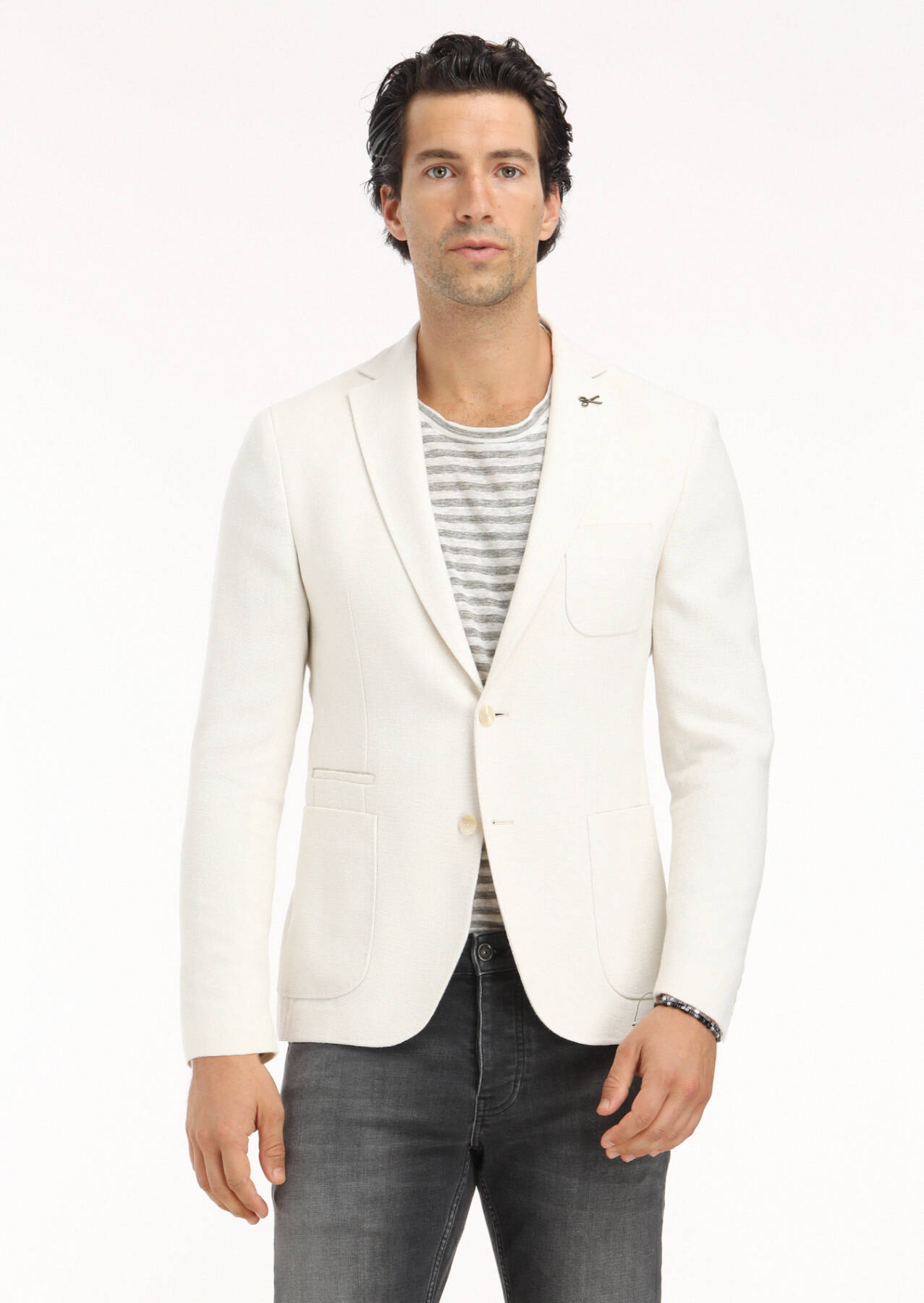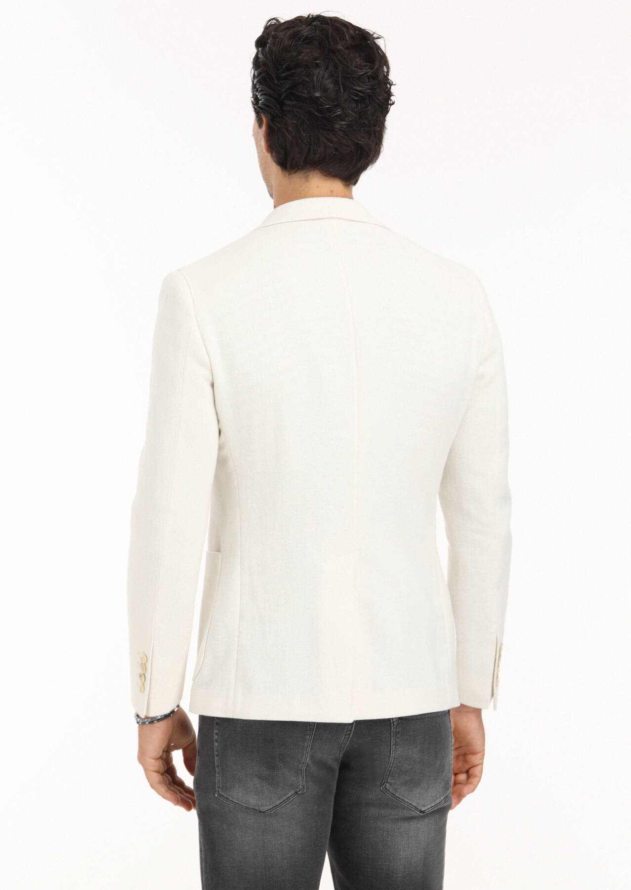 Ekru Desenli Shirt Shoulder Slim Fit Pamuk Karışımlı Ceket