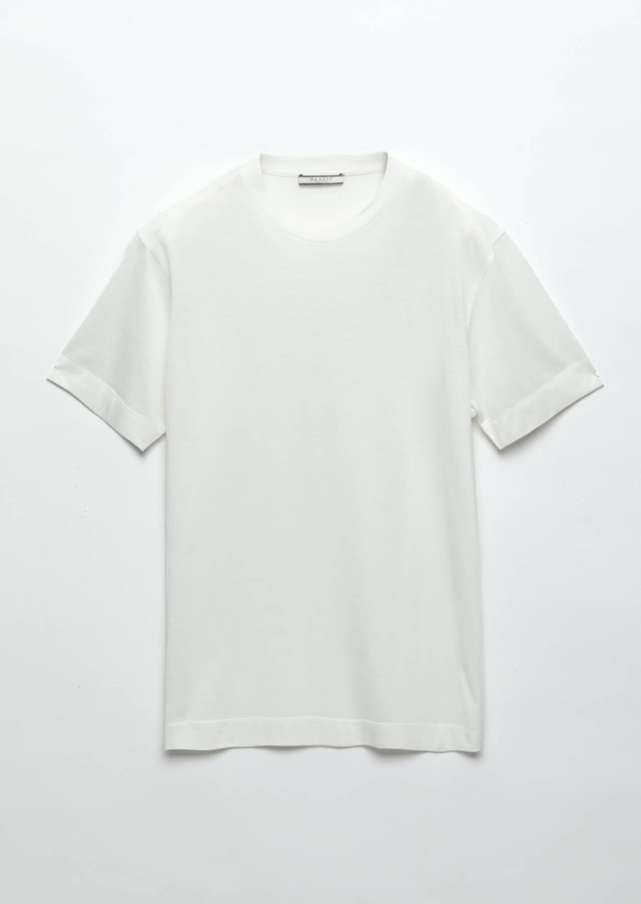 Ekru Düz Bisiklet Yaka İpek Karışımlı T-Shirt