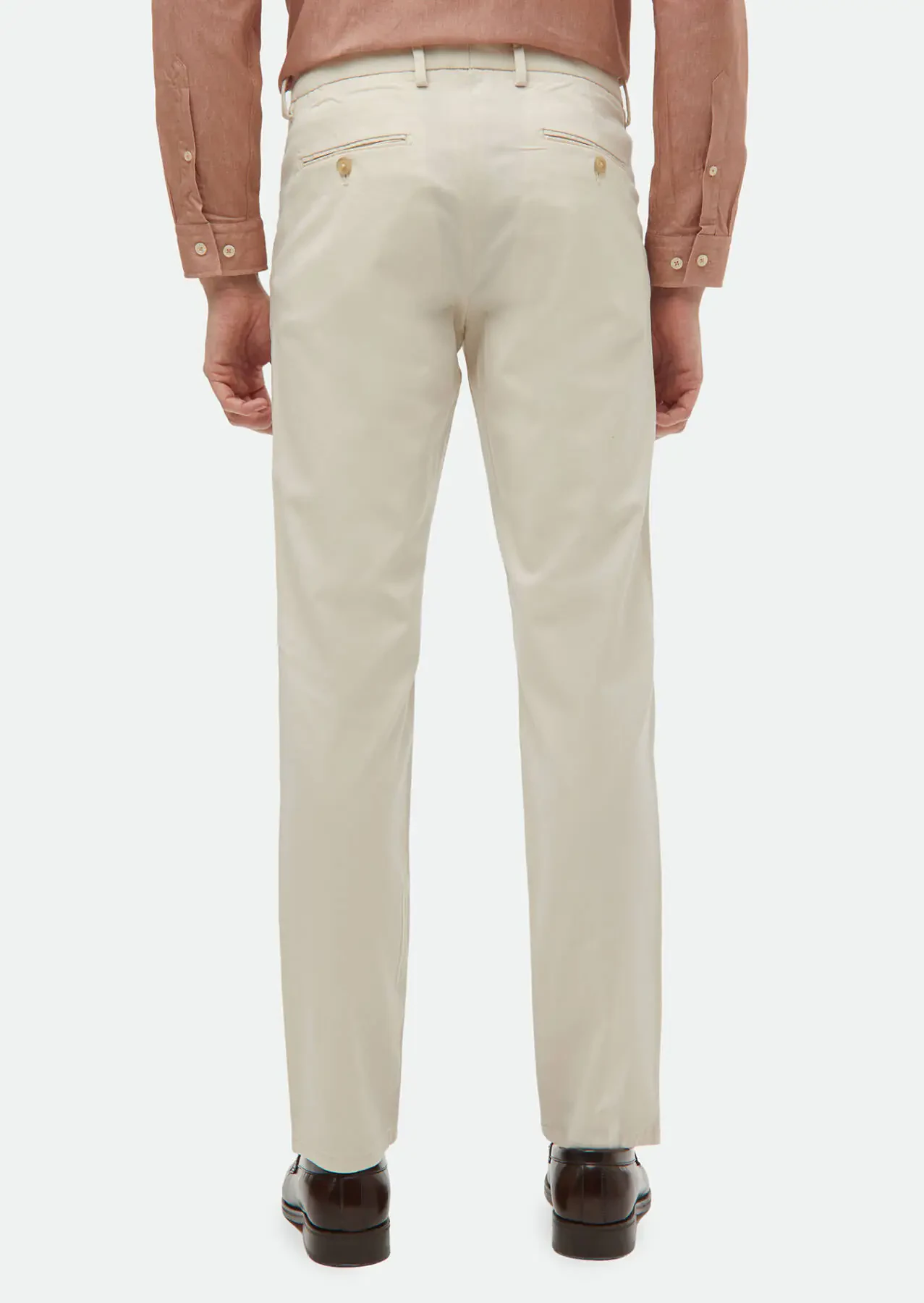 Ekru Düz Dokuma Regular Fit Casual Pantolon