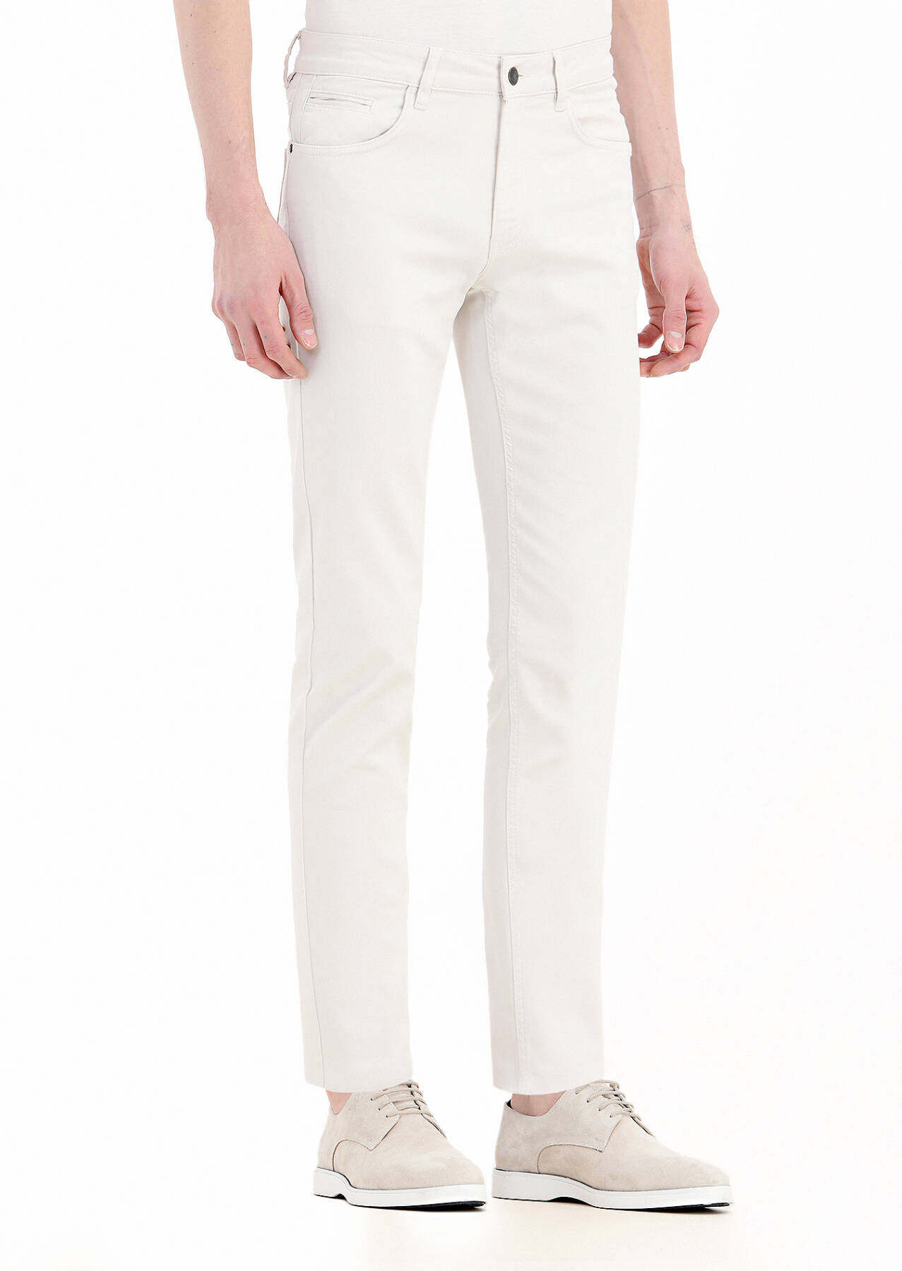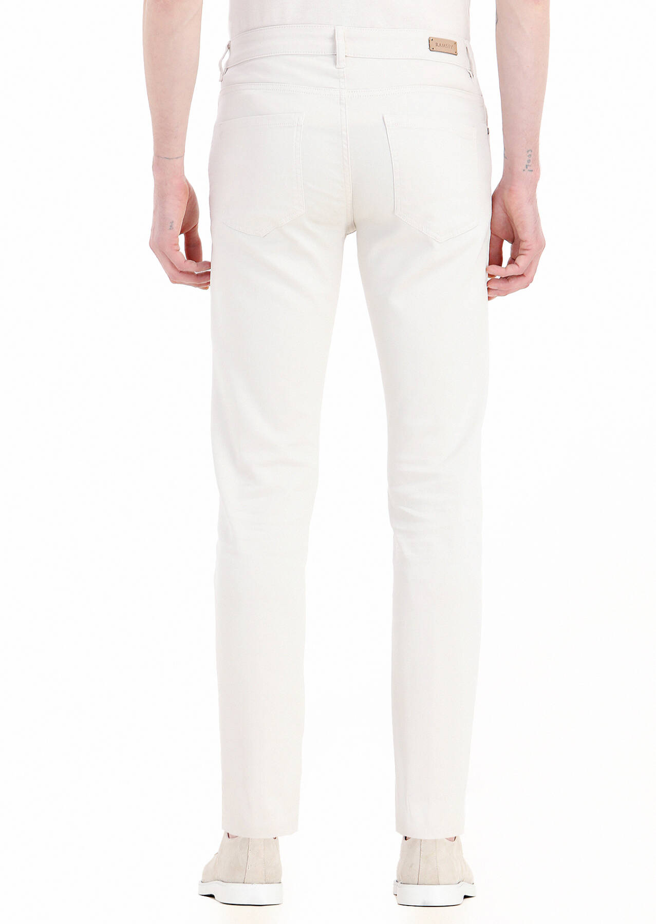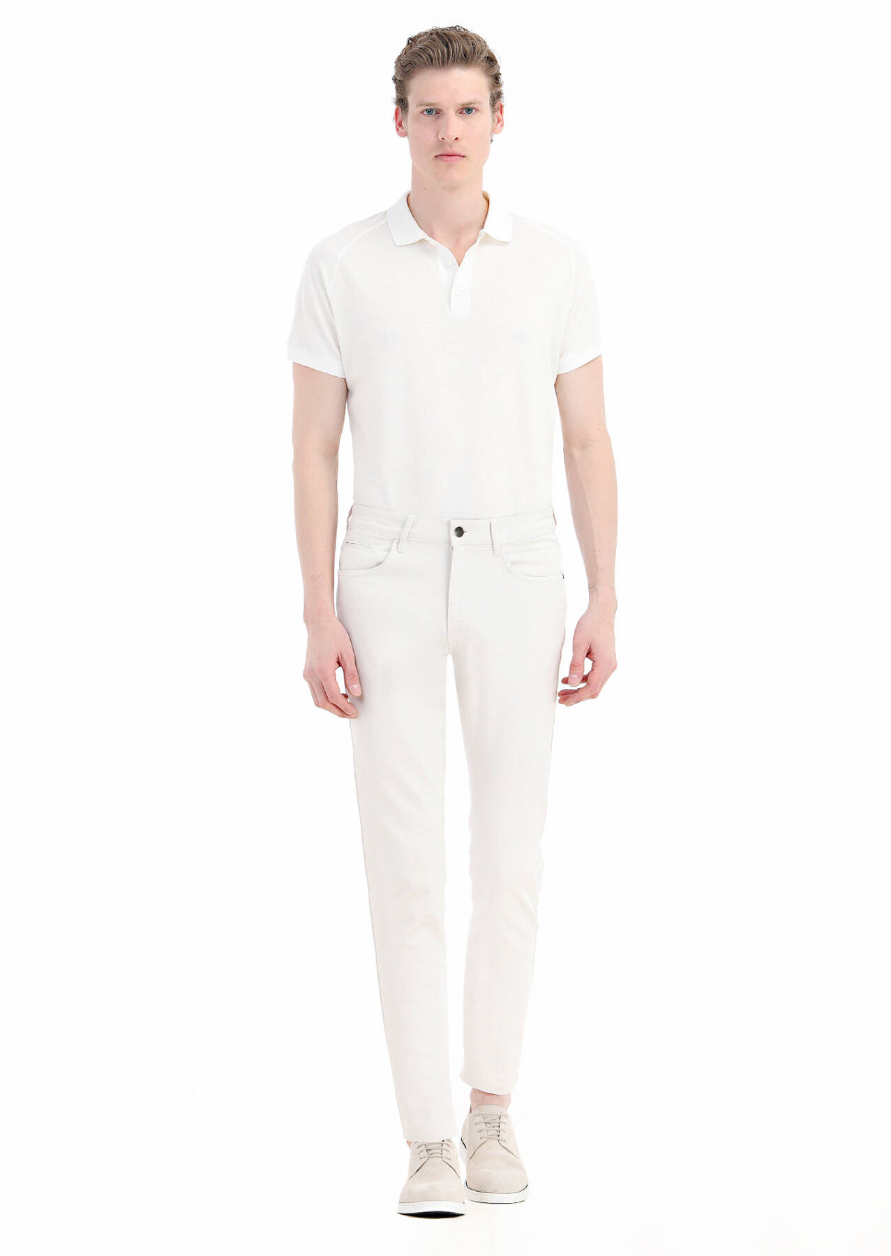 Ekru Düz Dokuma Slim Fit Casual Pamuk Karışımlı Pantolon