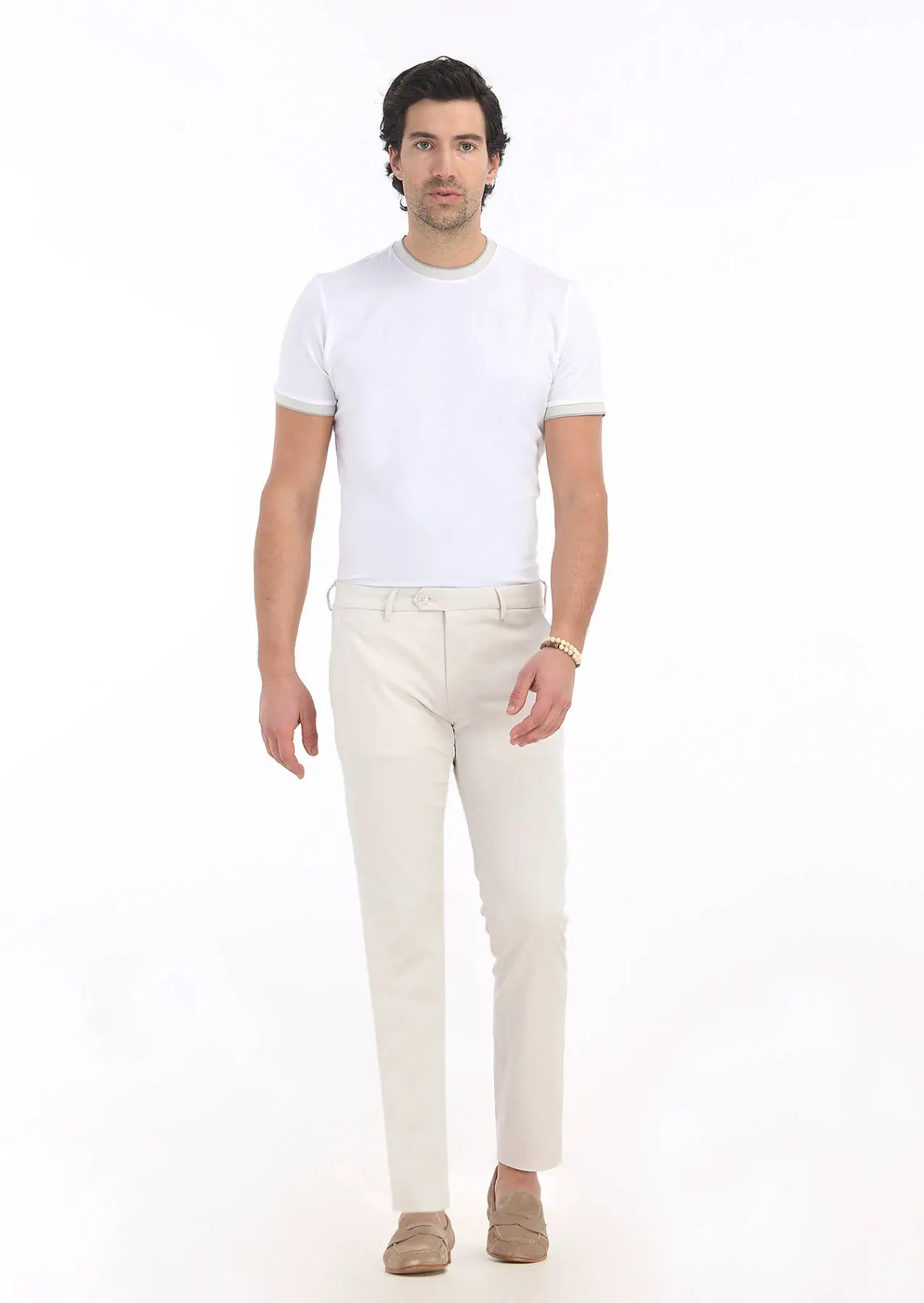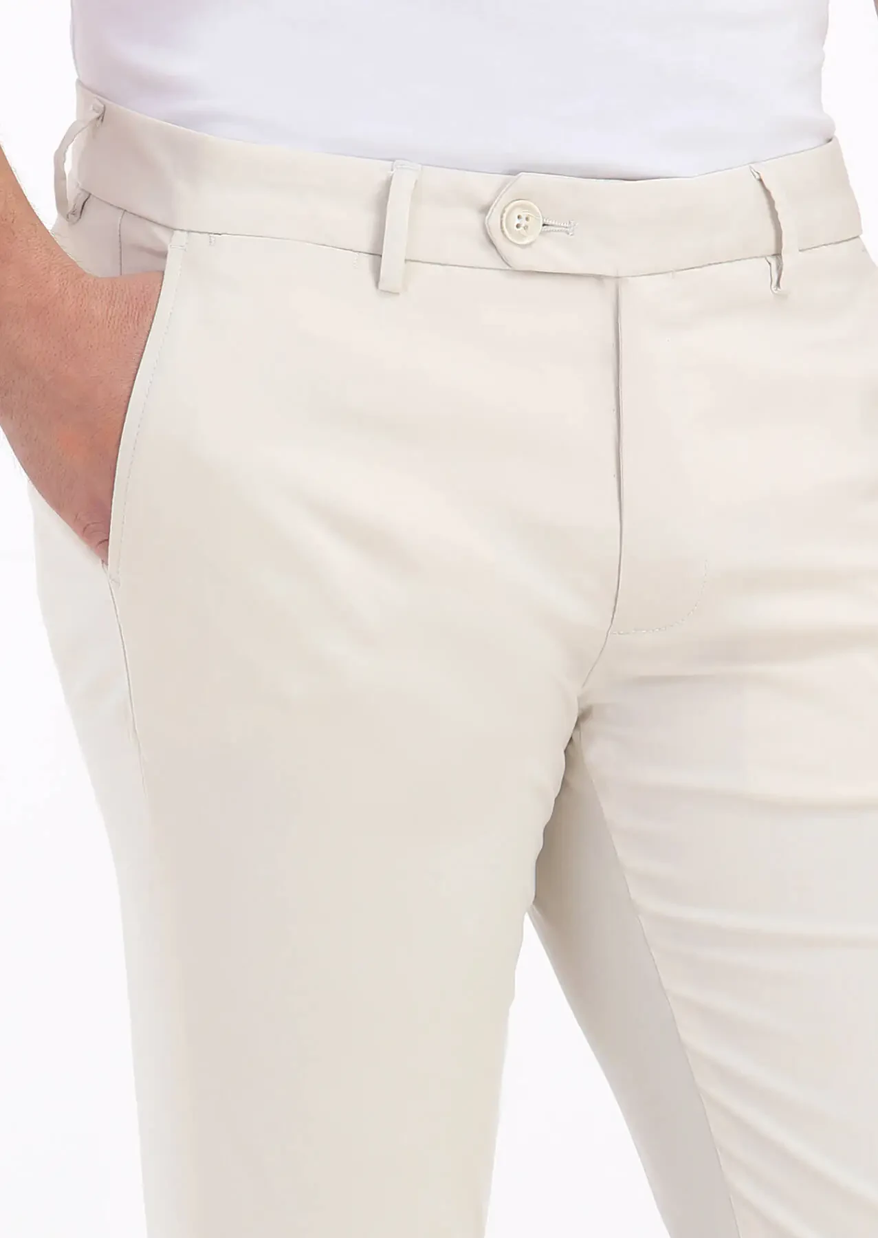 Ekru Düz Dokuma Slim Fit Casual Pantolon