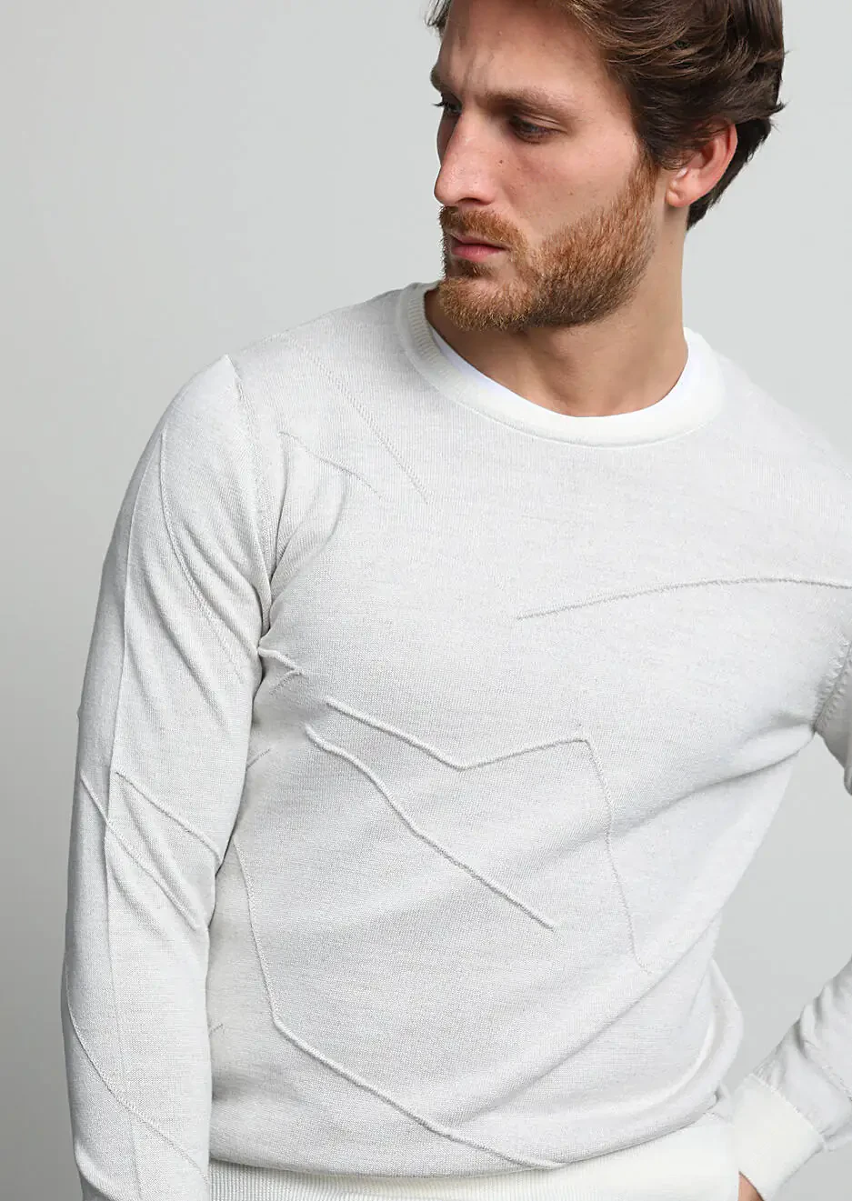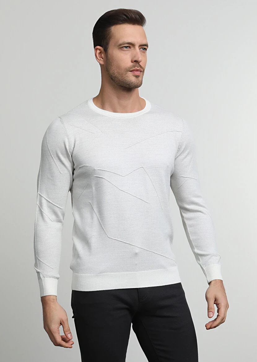 Ekru Jakarlı Yün Karışımlı Triko Kazak